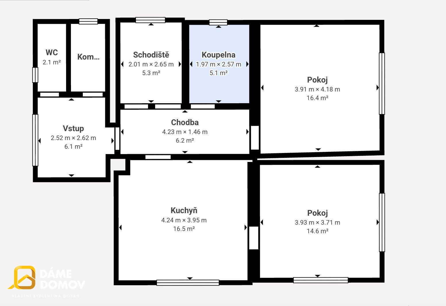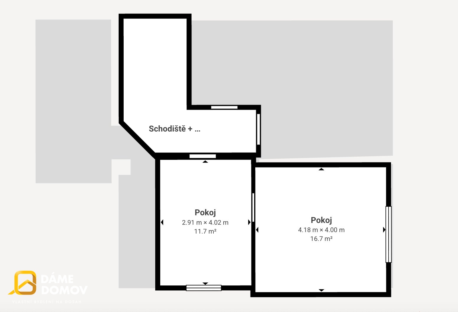 možnost rozšíření o další 3. pokoj / podkrovní místnost