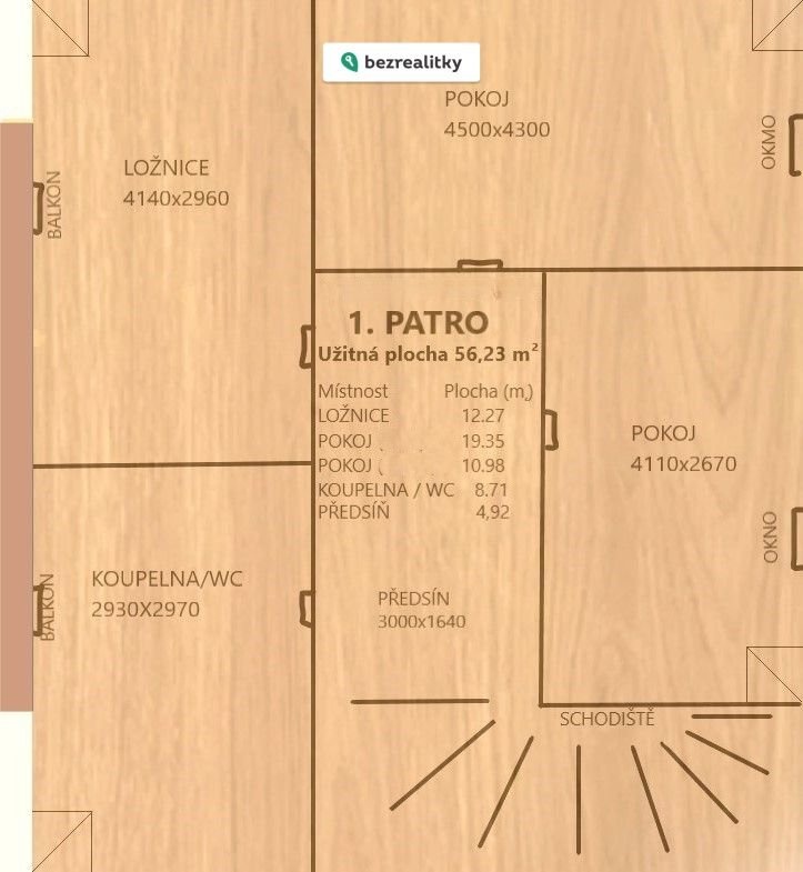 • 2. NP: ložnice, 2 pokoje, koupelna s WC, prostorný balkón přístupný z koupelny i ložnice.
