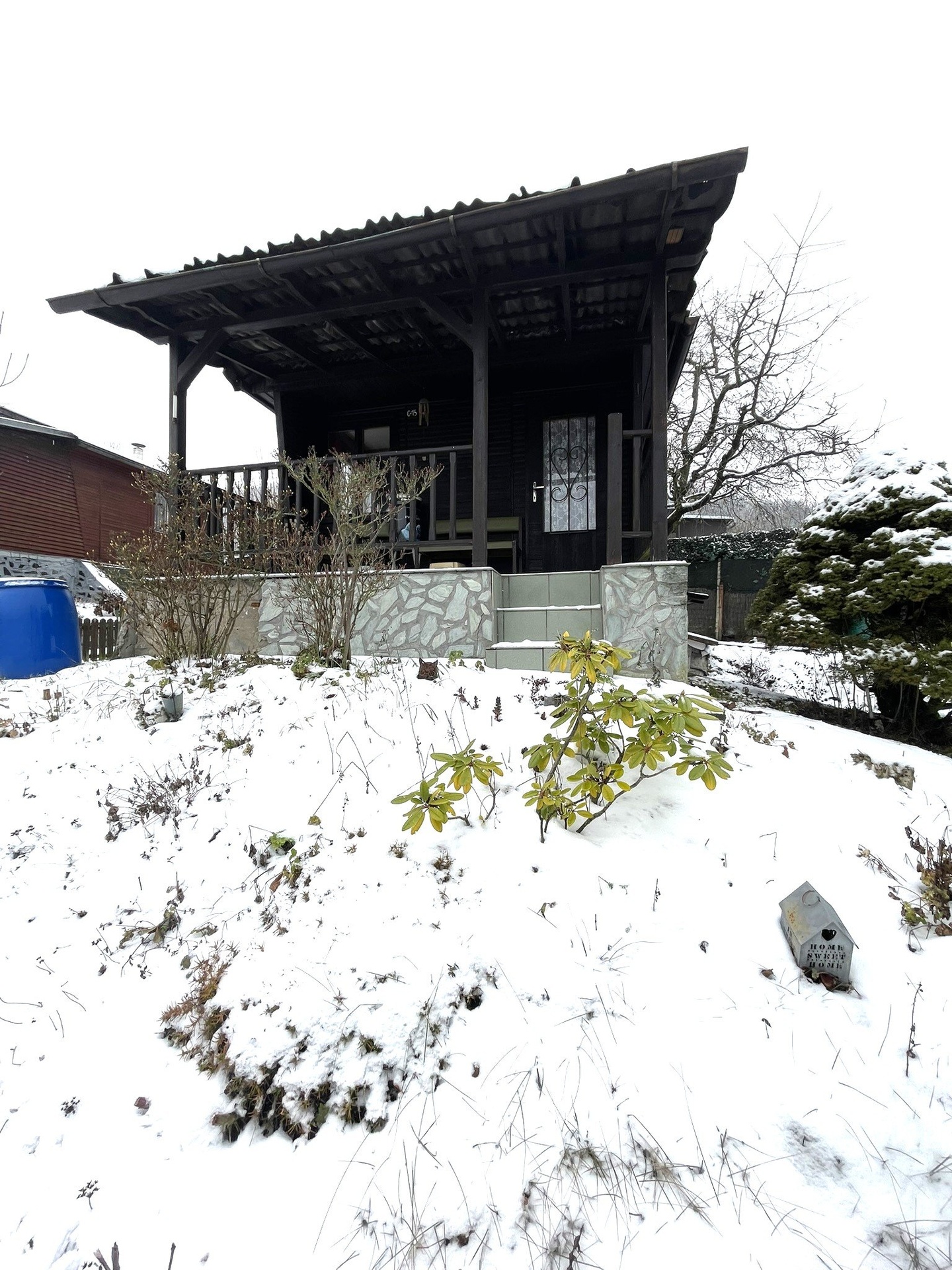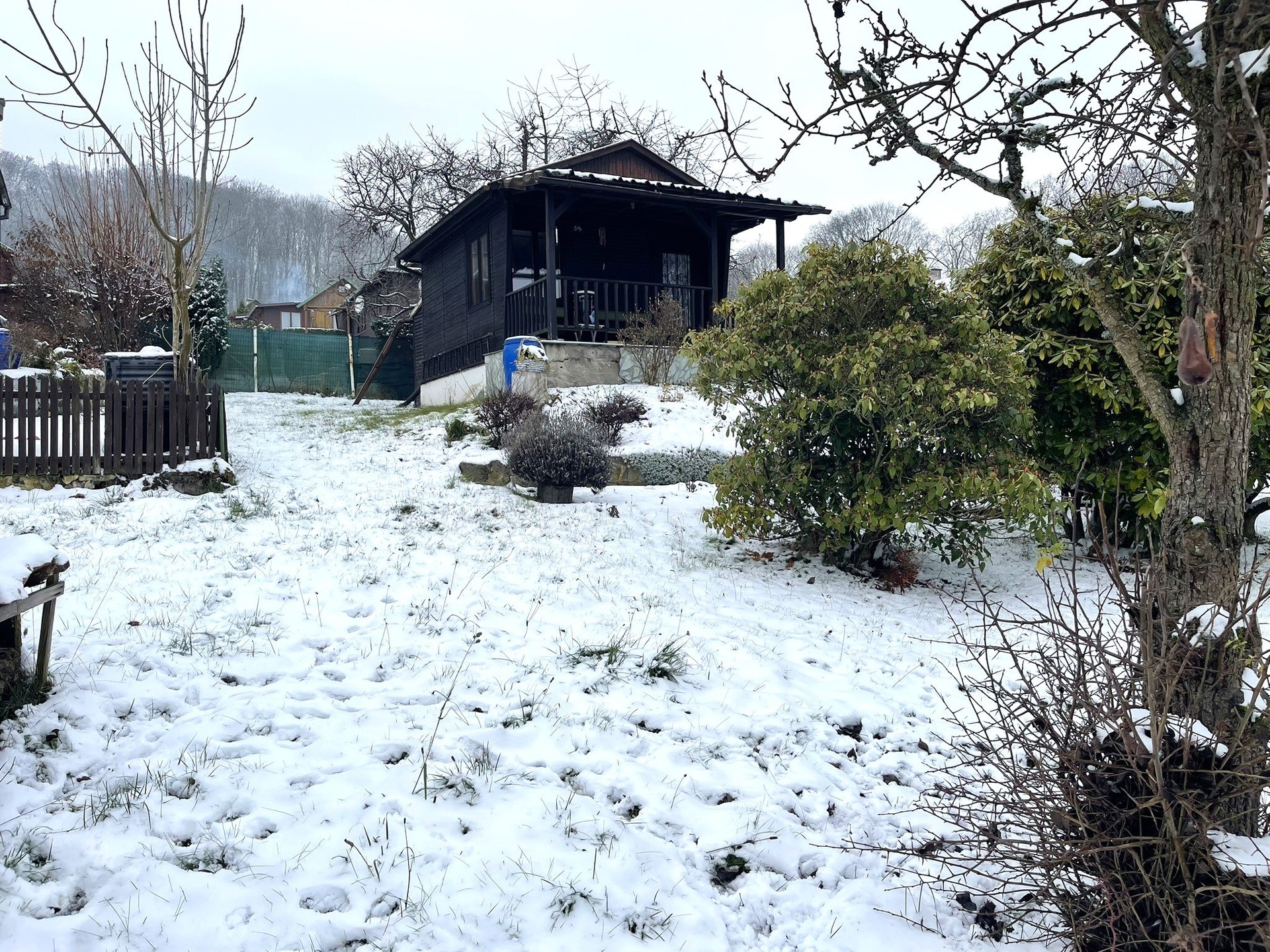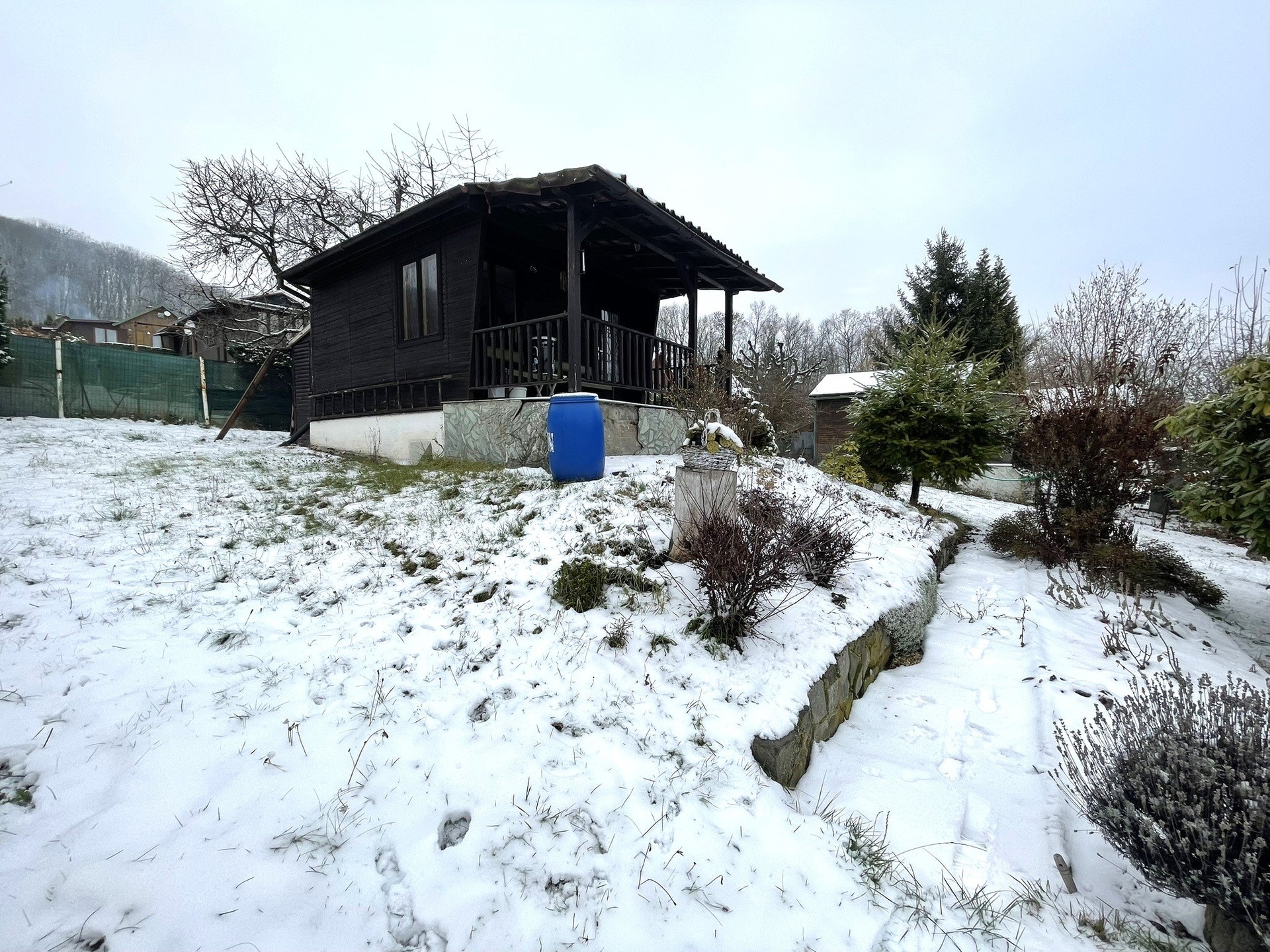 Chatka o zastavěné ploše 16 m2 je situována na vlastním mírně svažitém, oploceném pozemku o výměře 378 m2 a má nádherný výhled na okolí.