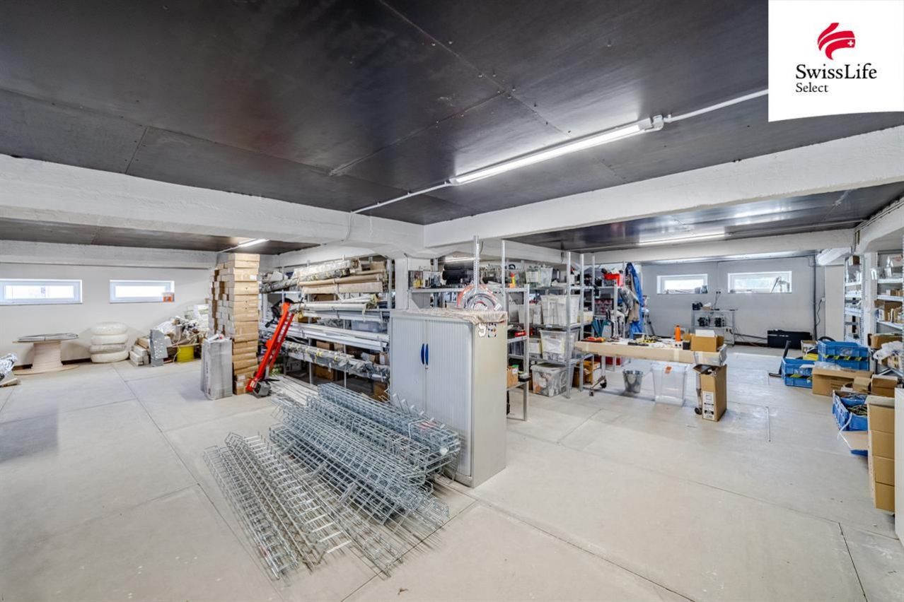Horní podlaží lze dokončit podle potřeb nového majitele jako kancelářské prostory, ateliéry nebo zázemí firmy. Na boku objektu se nachází malá garáž a technická místnost s přípravou pro další technologie.