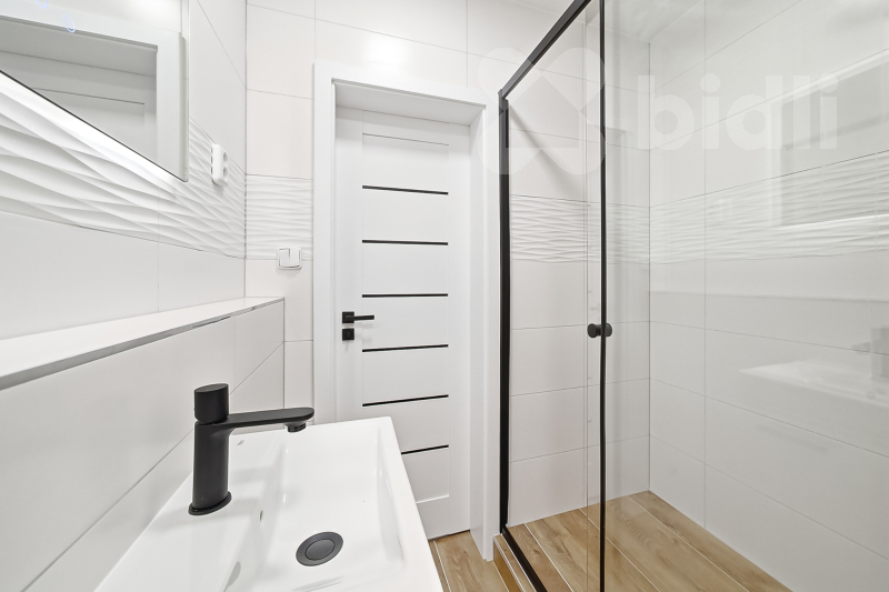 V rámci úprav byly realizovány nové rozvody elektřiny, kompletně nová koupelna i kuchyňská linka vyrobená na míru. V celém bytě jsou položeny vinylové podlahy, které podtrhují jednotný a elegantní charakter interiéru. Stropy byly sníženy pomocí sádrokartonových podhledů, čímž vzniklo příjemné a moderní osvětlení prostoru. Byt po rekonstrukci čeká na prvního majitele, je čistý, sladěný a připravený k okamžitému užívání.
