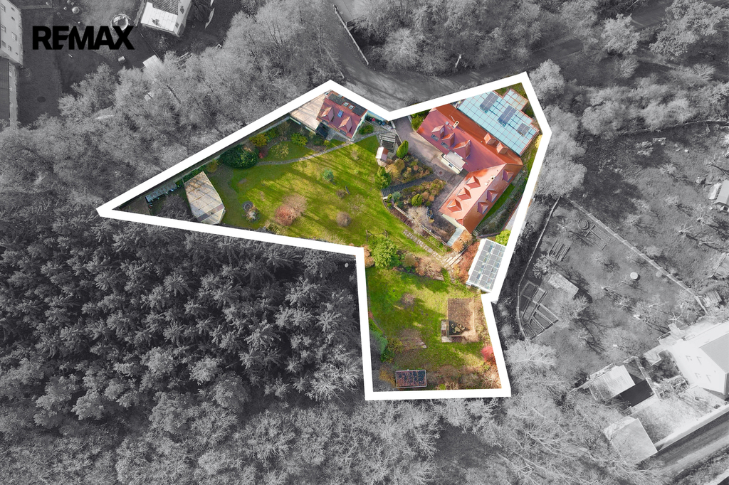 Soukromí je jedno z hlavních lákadel této nemovitosti – dům se nachází v těsné blízkosti lesa, což zaručuje naprostou intimitu a klid. Zahrada je skutečným klenotem tohoto sídla. Velký pozemek je částečně svažitý, což přidává na atraktivitě a poskytuje nezaměnitelný výhled. V horní části zahrady se nachází moderní skleník a sklad, který dříve sloužil jako rekreační chata a má přidělené číslo evidenční.