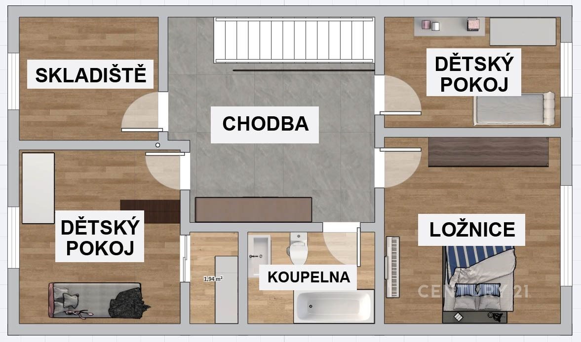 Pro děti: 3 samostatné dětské pokoje.