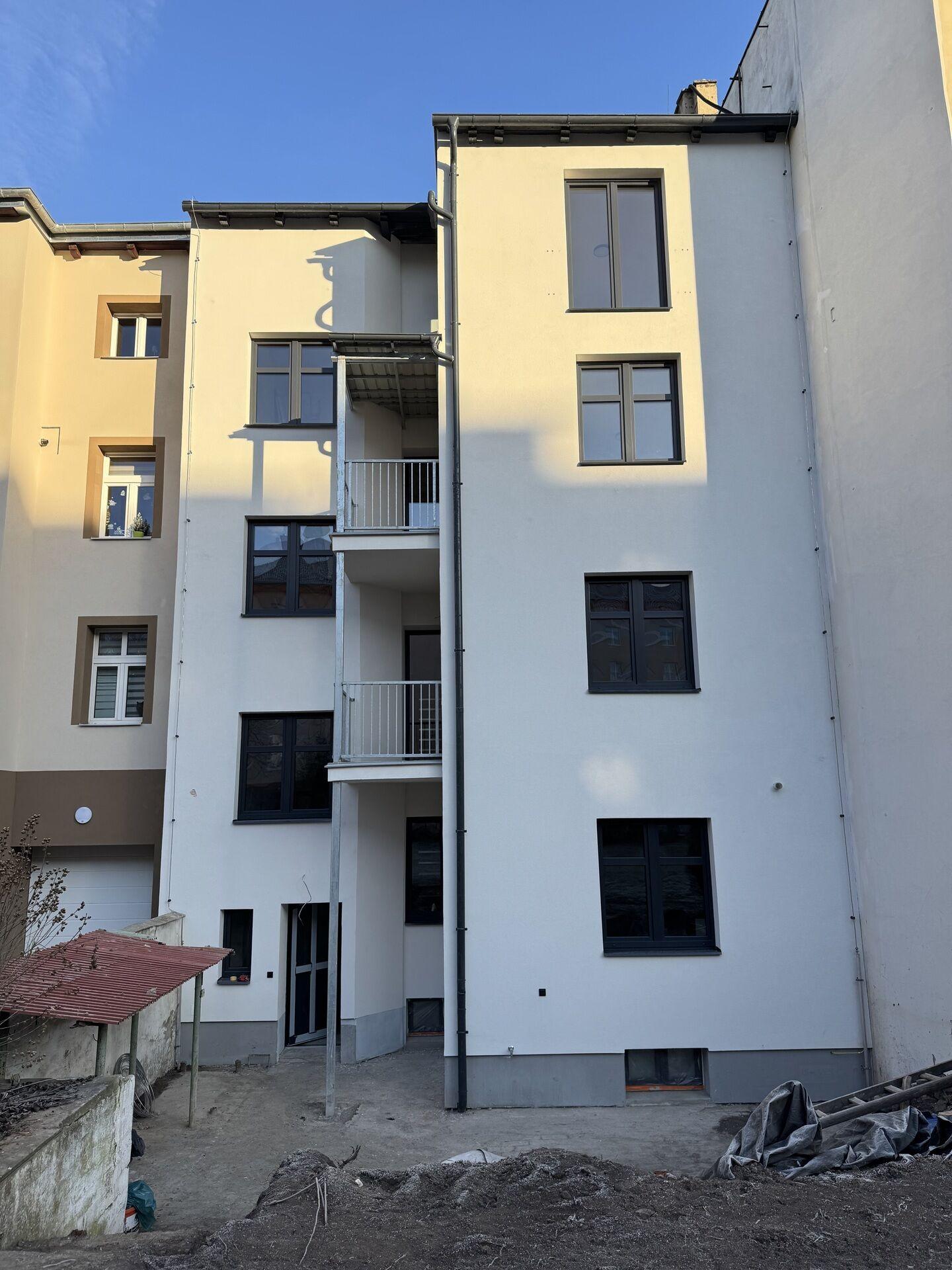 • Zateplení fasády do uličního průčelí bude dokončeno na jaře 2026 – dům bude poté spadat do energetické třídy A – mimořádně hospodárný.