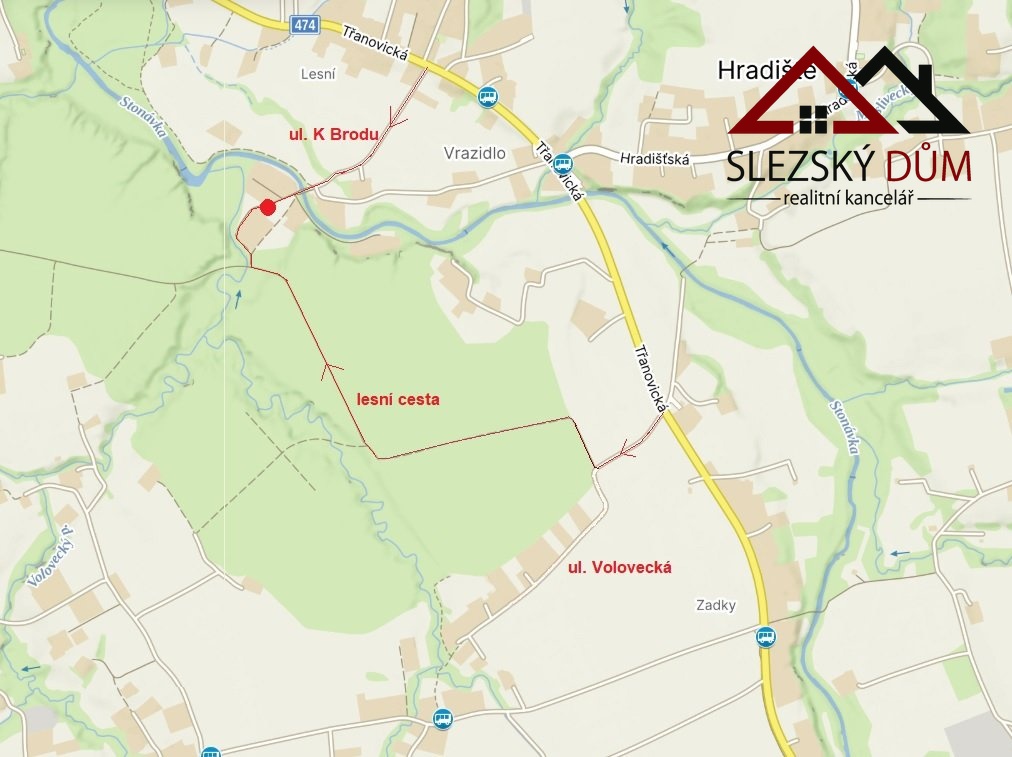Příjezd k nemovitosti vede po ulici K Brodu nebo Volovecká. Na ulici K Brodu je brod přes řeku Stonávku. Většinu roku je brod snadno sjízdný i pro běžné vozy – projíždí zde i popelářský vůz. Pro pěší je k dispozici lávka přes řeku. V období zvýšené vody lze auto ponechat před brodem a k chatě dojít pěšky nebo využít cestu k chatě z druhé strany přes lesy ČR a ulici Volovecká.