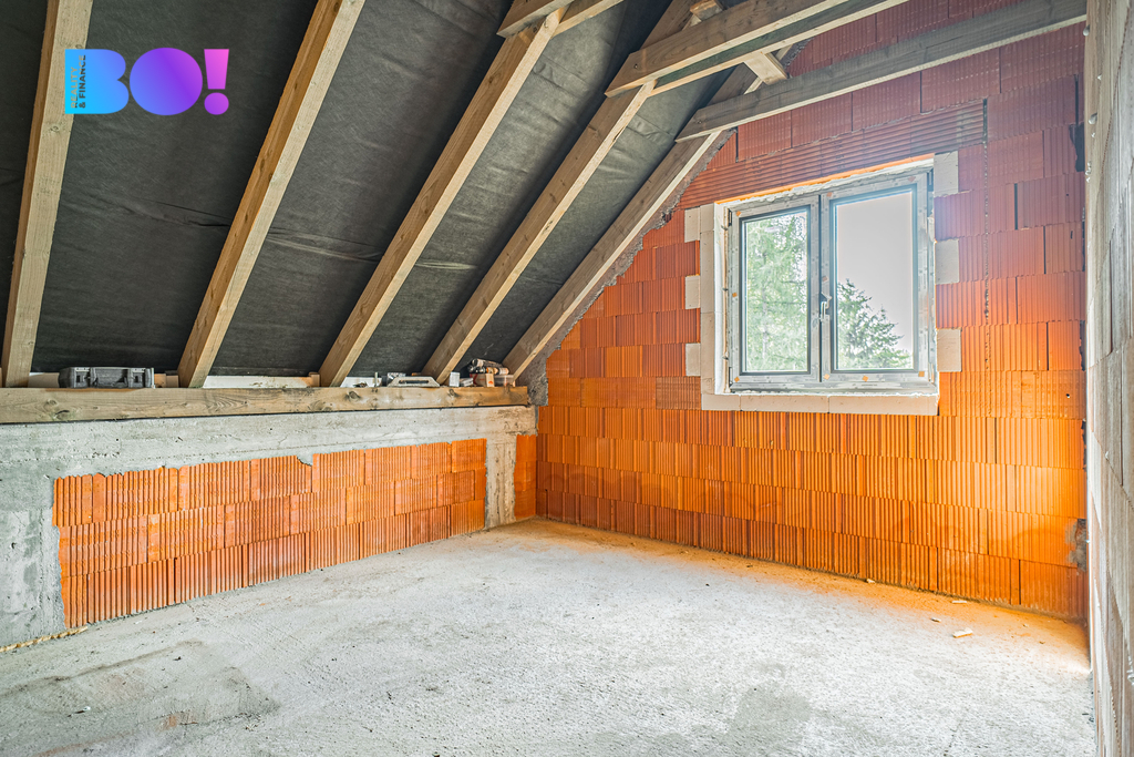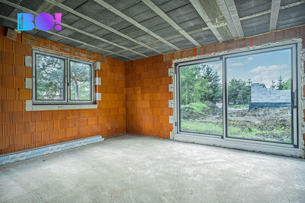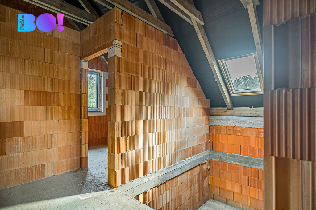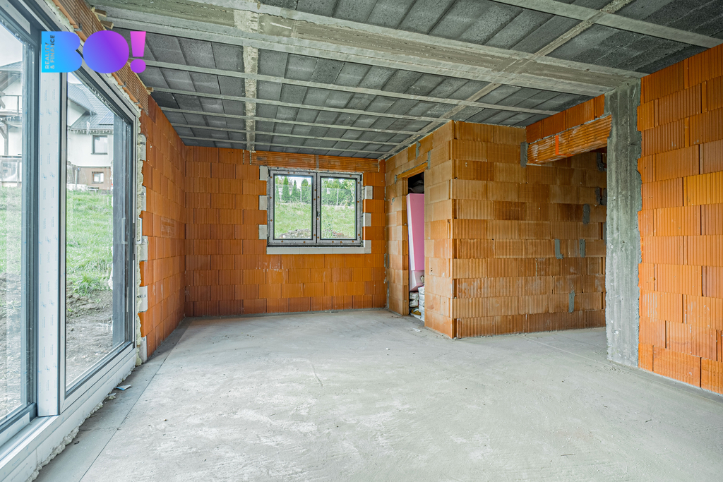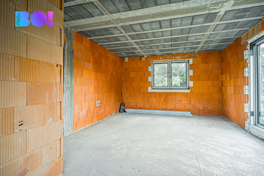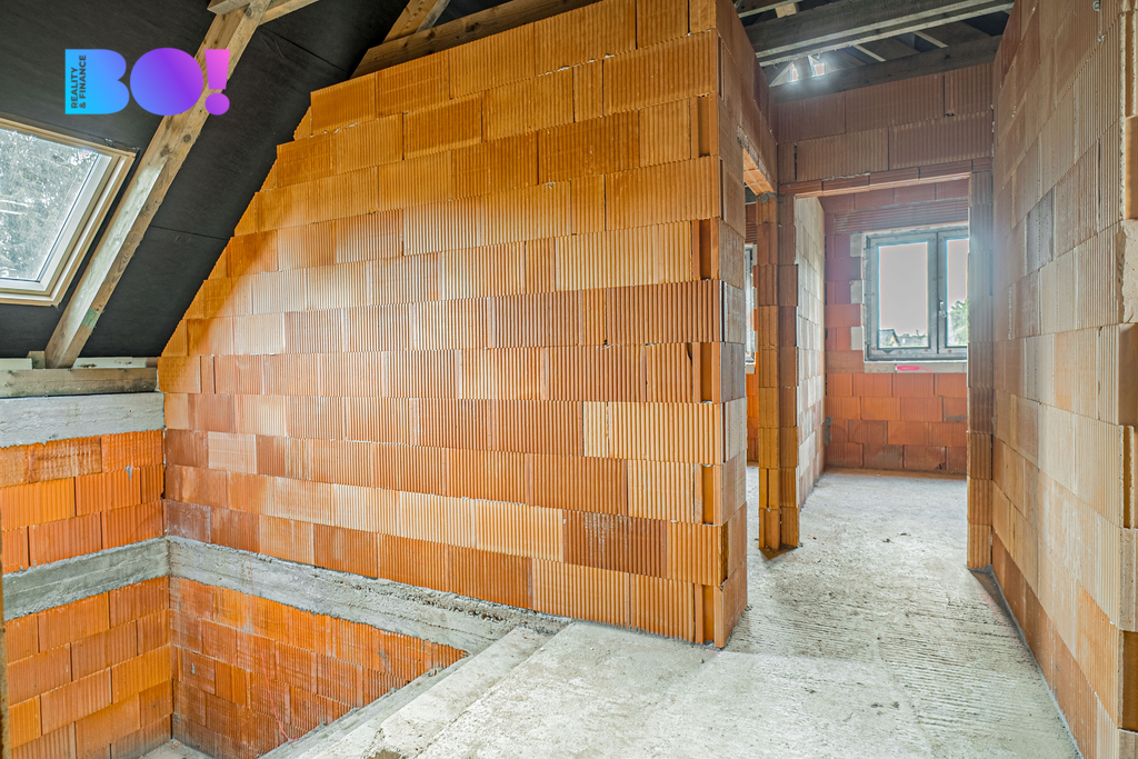 Na pozemku se nachází rozestavěná hrubá stavba rodinného domu, která poskytuje ideální základ pro dokončení podle vašeho vlastního stylu. Dům má již hotovou hliníkovou střechu a osazená plastová okna, což výrazně urychlí další práce a sníží náklady na dokončení. Díky tomu si můžete interiér doladit přesně tak, jak si vysníte – od dispozic až po výběr materiálů a barev.