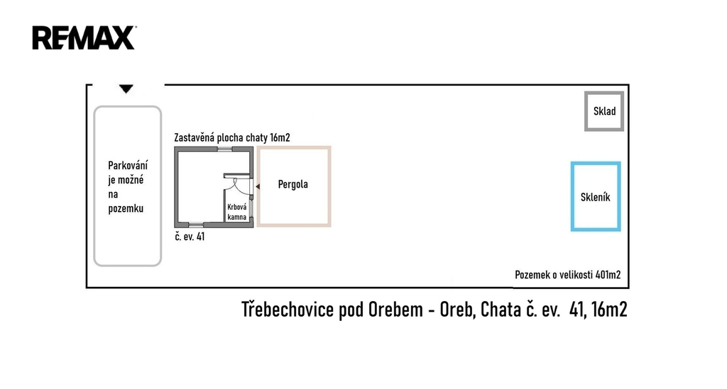 Předmětem prodeje je pouze stavba. Pozemek pod chatou i zahrada jsou ve vlastnictví města Třebechovice pod Orebem a užívány na základě nájemní smlouvy na dobu neurčitou.