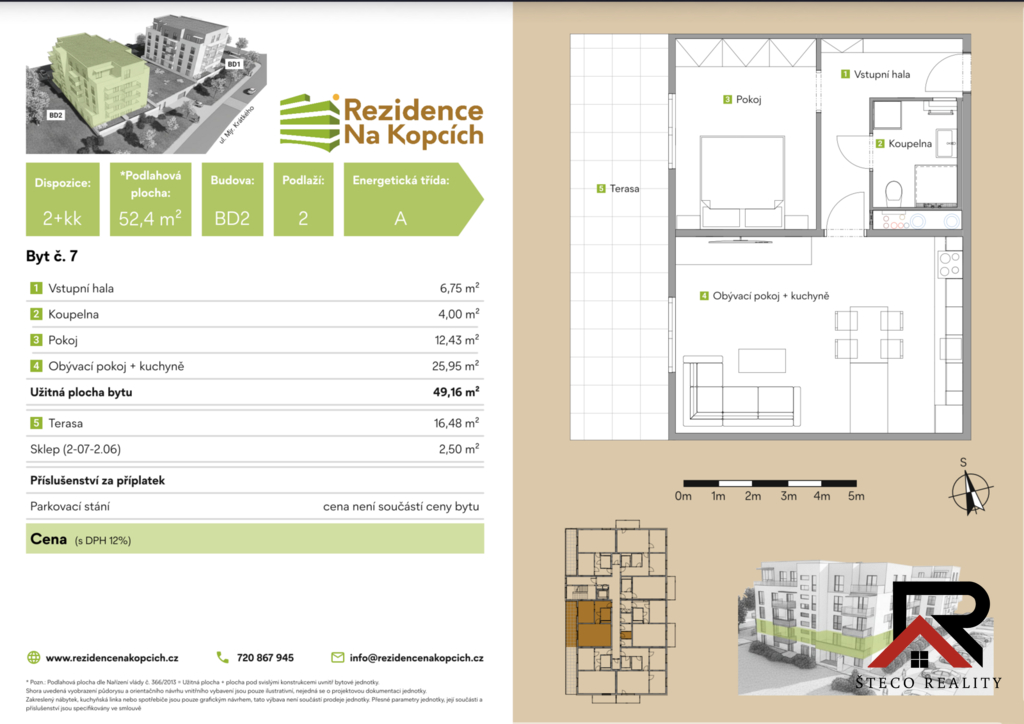 | Dispozice/podlahová plocha: | 2+kk/52 m² |