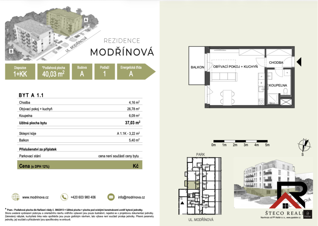 | Dispozice/podlahová plocha: | 1+kk/40 m² |