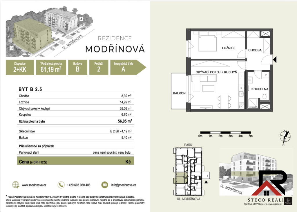 | Dispozice/podlahová plocha: | 2+kk/61 m² |