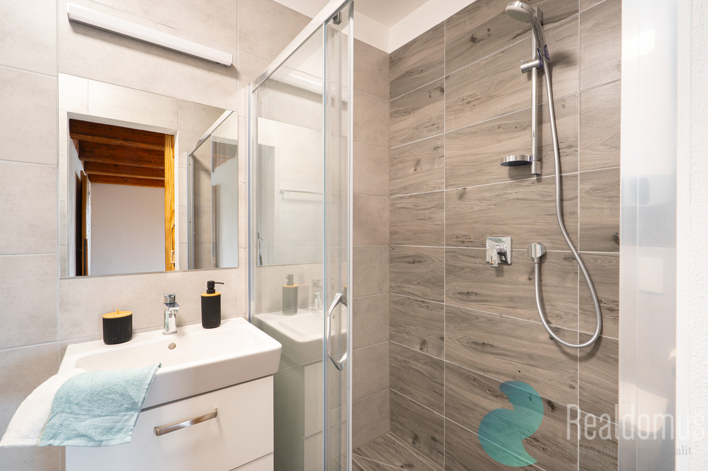 Tento rodinný dům disponuje dvěma velmi prostornými bytovými jednotkami, kdy každá z nich má výměru 53 m2. Jedná se o společnou vstupní chodbu a samostatný obytný prostor se sociálním zařízením. K dispozici od majitele máte úplně novou kuchyňskou linku s vestavnými spotřebiči a koupelnu se sprchovým koutem a toaletou. Na první pohled Vás zaujme velmi hezký interiér.