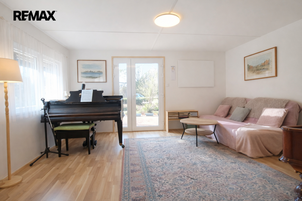 Dispozice 4+1 nabízí světlé místnosti, modernizovanou kuchyni s francouzskými dveřmi na terasu a velmi příjemnou atmosféru celého domu. V celém domě jsou nová kvalitní okna (trojskla) a prosklené vstupní dveře Weber, dvojité zateplení a nová fasáda, nová kuchyně a podlahy (kvalitní vinyl Quick-Step), kompletní výmalba, nové terasy z modřínu, z toho západní zastřešená luxusním polykarbonátem a připravená na případné zvětšení nemovitosti. Proběhly úpravy dispozic/vestavba nových místností (koupelna, šatna/krbová místnost, dětský pokoj), komplet nový komín, nové oplocení, terénní a zahradní úpravy a stavba/posílení opěrných zdí. Vytápění zajišťují kvalitní a šetrné infrapanely Wellina s individuální regulací a kamna na tuhá paliva s rozvodem teplého vzduchu po celém domě; což zajišťuje nízké měsíční náklady cca 3 880 Kč. Vyjímečný pozemek o výměře 1 065 m² je terasovitý, s nádherným výhledem a soukromím, osázen pečlivě vybranými ovocnými dřevinami, se zahradním domkem/kůlnou a možností parkování na pozemku i před nemovitostí; zastavitelnost dle územního plánu max. 30 %. Zdrojem vody je vlastní vrtaná studna s dostatkem vody i v letních měsících (v roce 2025 bylo instalováno nové čerpadlo a nová domácí vodárna), odpad je řešen jímkou/septikem; v obci je intenzivně připravován projekt vodovodu a kanalizace.