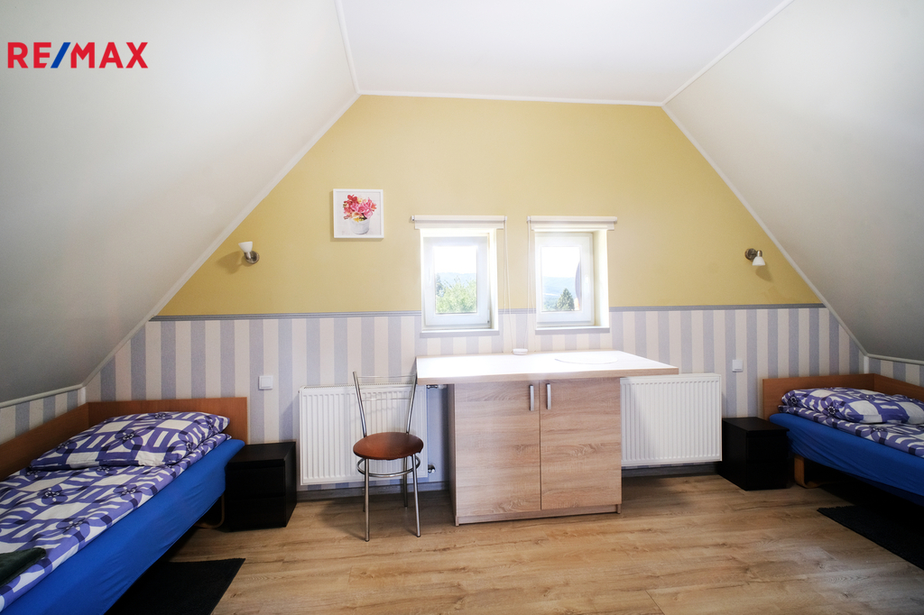 ✔️ 9 jedno až dvoupokojových apartmánů, každý s vlastním sociálním zařízením, kuchyňka je společná na patře, některé apartmány mají kuchyň vlastní.