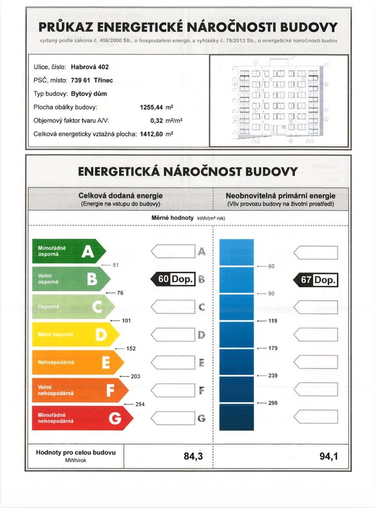 - Energetický ukazatel podle vyhlášky: č. 78/2013 Sb.
