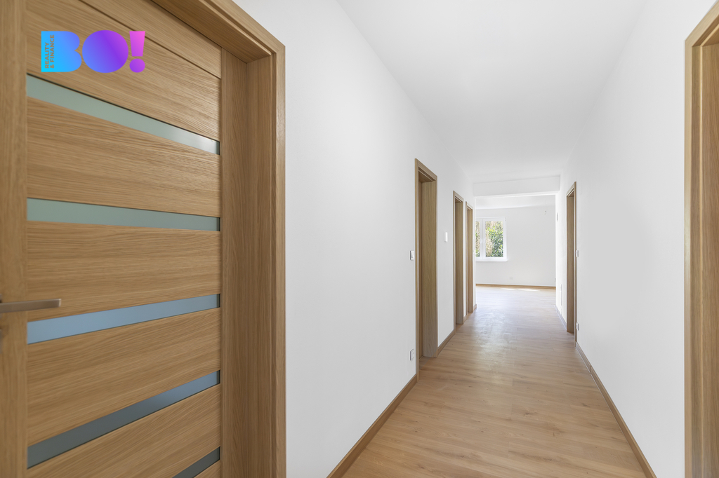 Dům nabízí tři prostorné pokoje, které snadno zařídíte podle svých představ. Hlavním centrem je velký obývací pokoj s krbem, propojený s prostorem pro kuchyňskou linku, kterou si nový majitel navrhne a zrealizuje přesně podle svého vkusu.