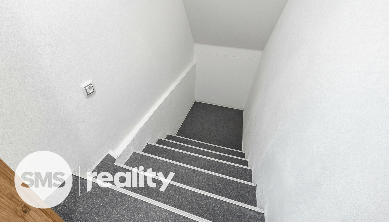 Ve spodním patře je umístěna moderní kuchyně vybavená vestavěnými spotřebiči (indukční deska, elektrická trouba, digestoř, lednice, myčka) a obývací pokoj, ze kterého vede schodiště do patra. Horní podlaží tvoří tři samostatné neprůchozí pokoje, šatna, koupelna a oddělená toaleta. K bytu náleží také balkon.
