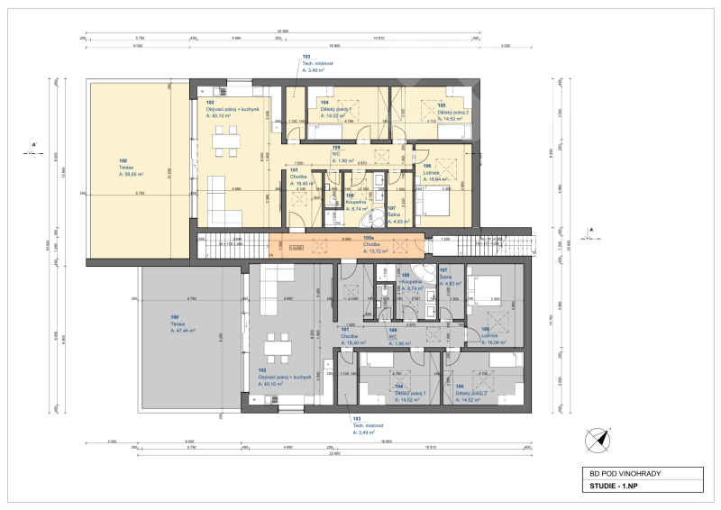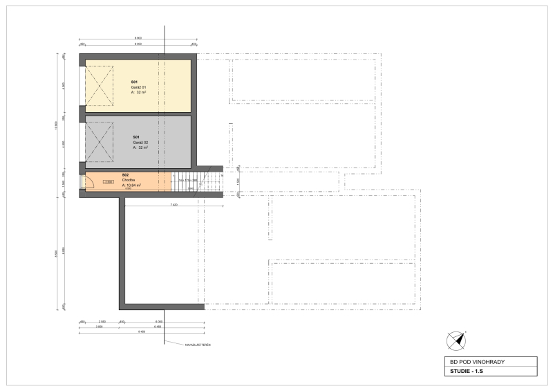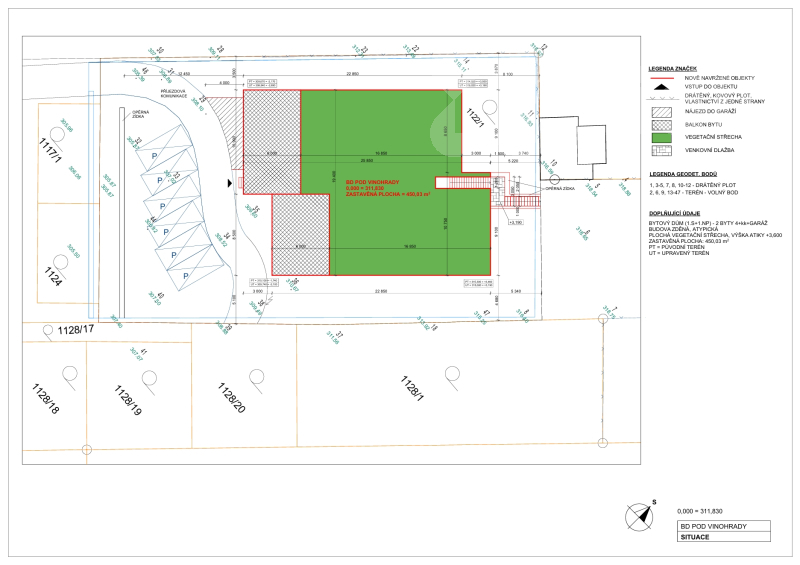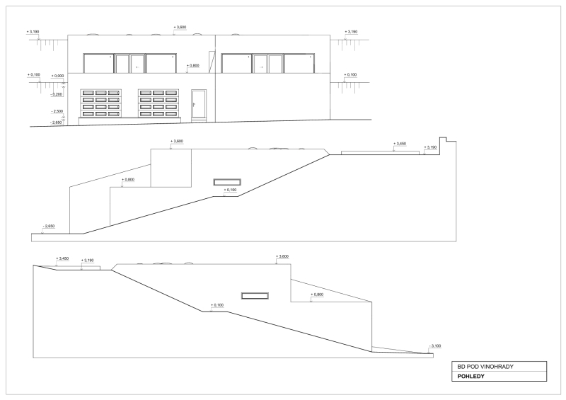 K pozemku je vypracován projekt novostavby moderního viladomu se dvěma luxusními byty. Každý byt má 117m2, větší terasu s nádherným výhledem 47m2 a 59m2, vlastní garáž 32m2 a zahradu. Před domem je plánováno šest parkovacích stání.