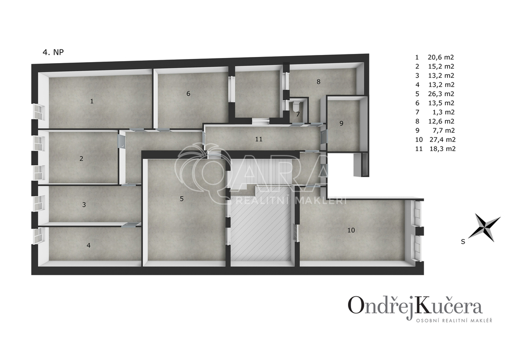 - 4 nadzemní podlaží + velké sklepní prostory