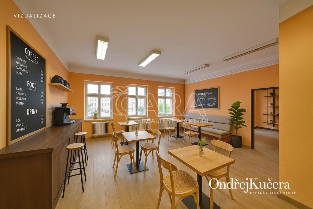 - Přímý vstup z náměstí, výborná viditelnost i frekvence lidí
