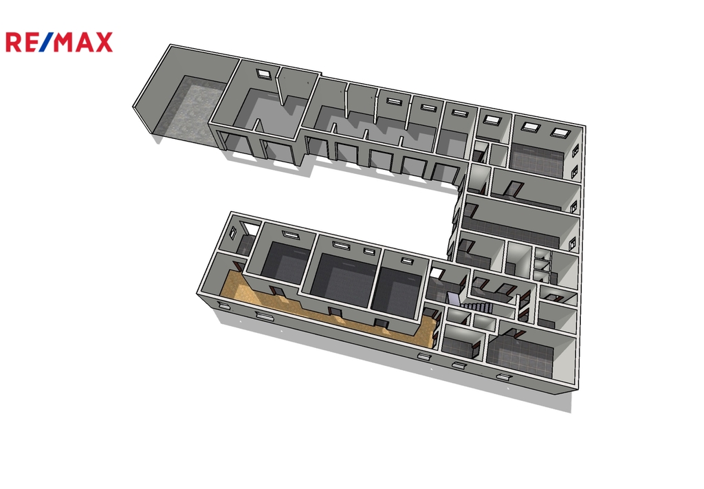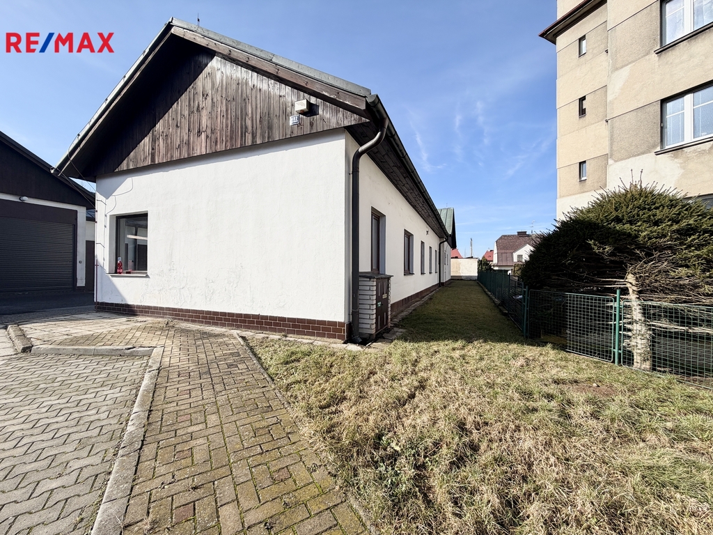 Objekt nabízí praktické dispoziční řešení s dostatkem místností, zázemím pro zaměstnance i parkováním.