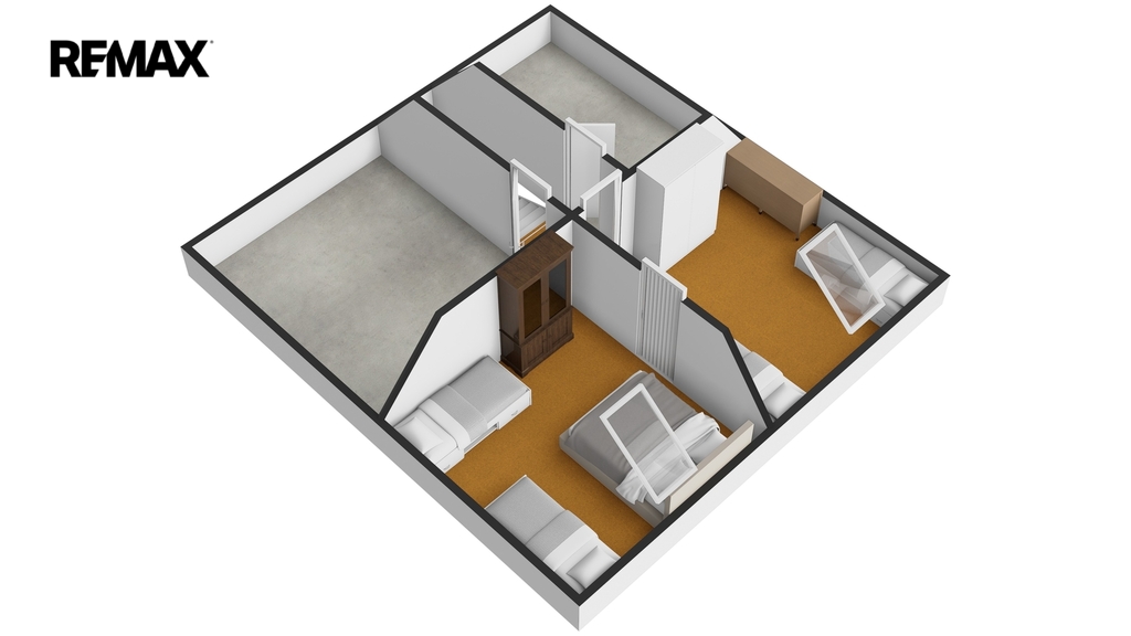 Podkroví je tvořeno dvěma pokoji, malou chodbou a dvěma půdními prostory vhodnými pro uskladnění věcí, případně s možností přestavby na další dva malé pokoje.