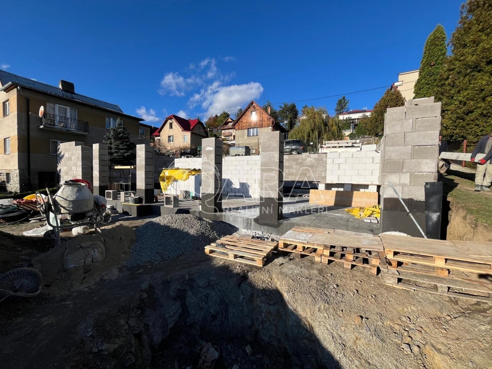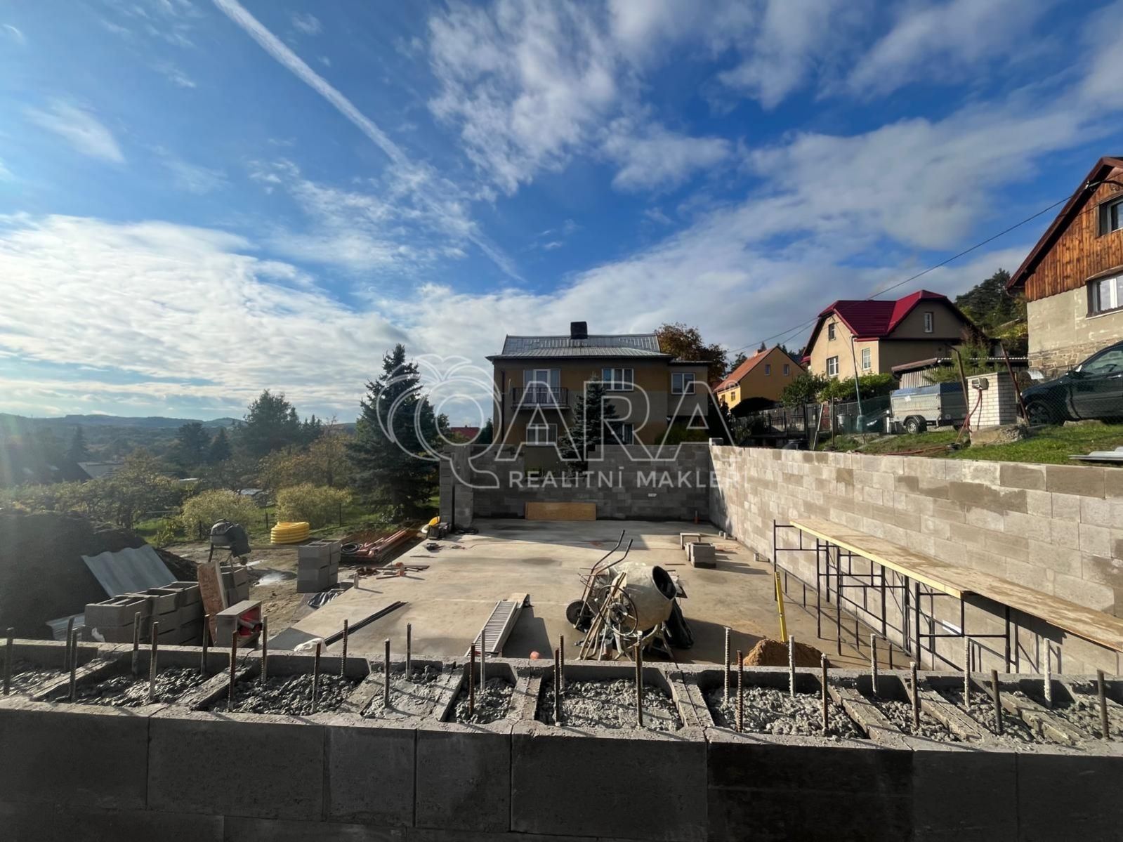 Částečná hrubá stavba suterénu (1. PP) připraveno k pokračování výstavby.