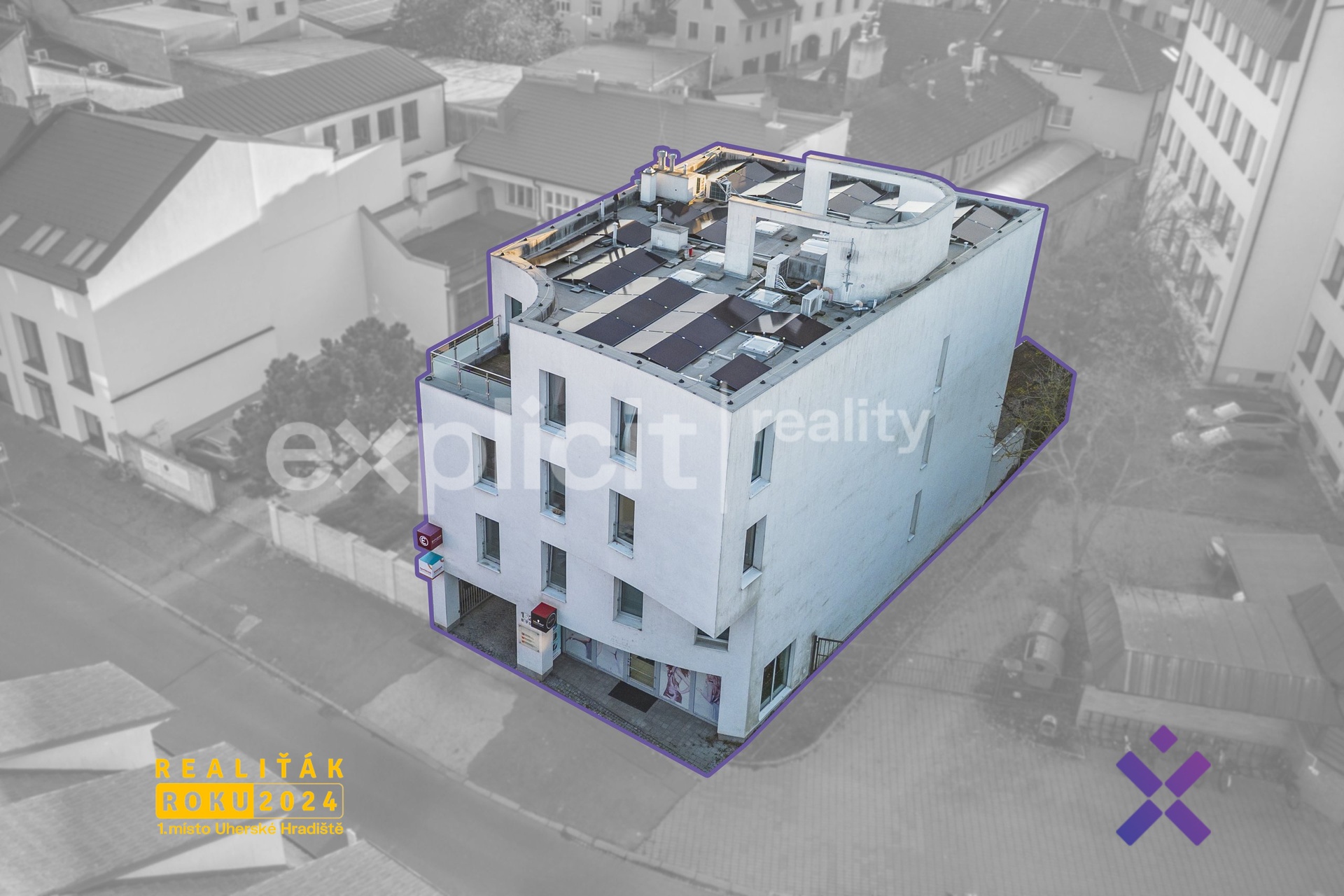 - víceúčelová budova (obchod + kanceláře + byt/studio)