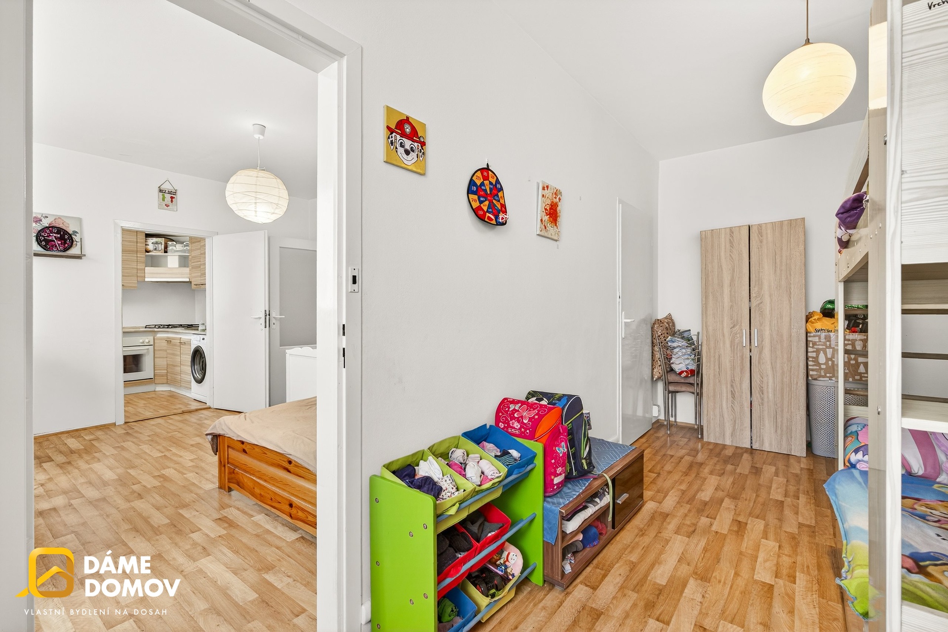 Byt se skládá z kuchyně, obývacího pokoje, dětského pokoje a koupelny se sprchovým koutem a toaletou. Dispozice je praktická a vhodná jak pro vlastní bydlení, tak především jako investiční příležitost. Byt před 10 lety prošel kompletní rekonstrukci.