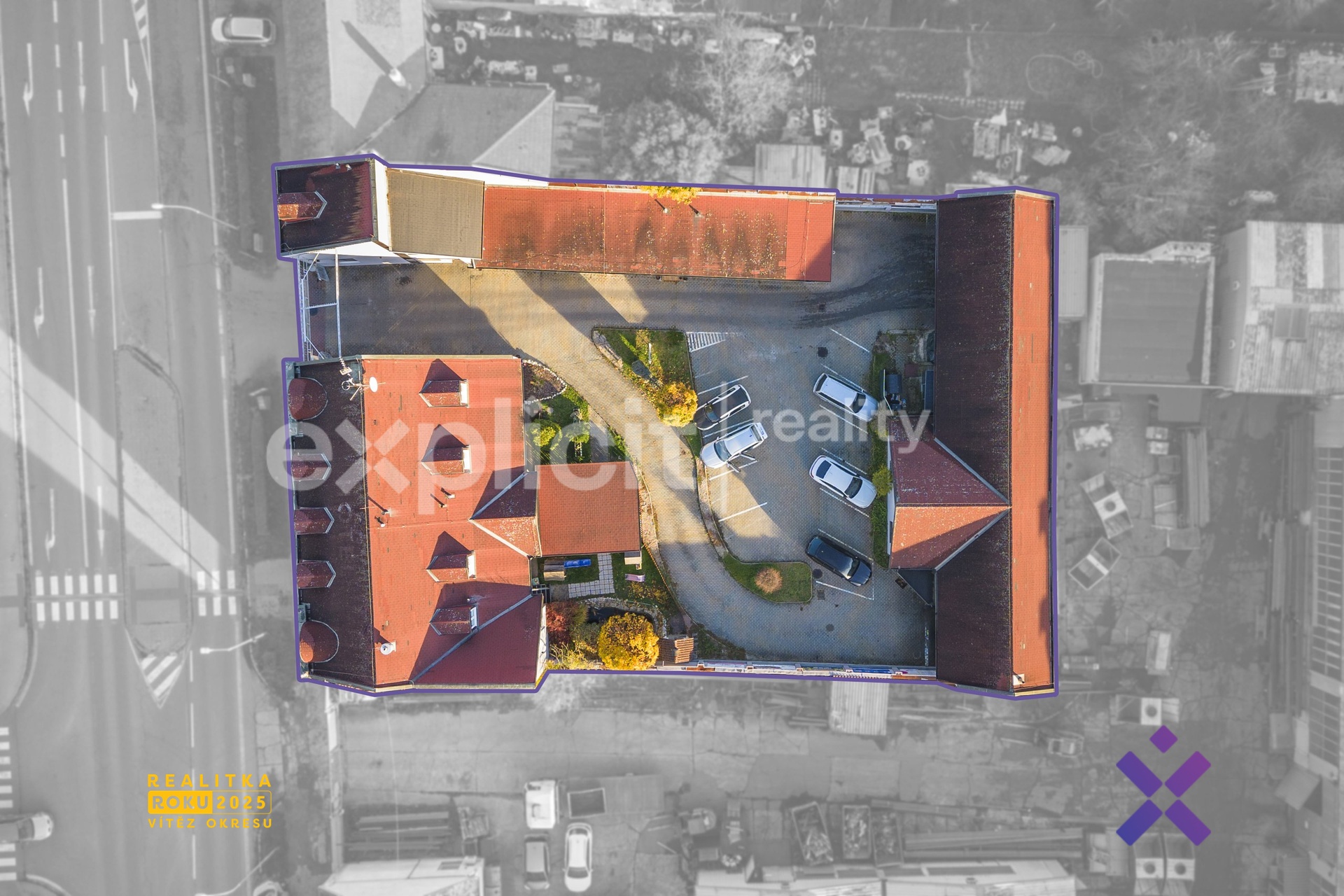Tento rozmanitý komplex propojuje hotelový provoz, privátní wellness, kancelářské prostory, garáž a automyčku s předmytím. To vše na jednom místě, s výbornou dostupností a vlastním parkováním.