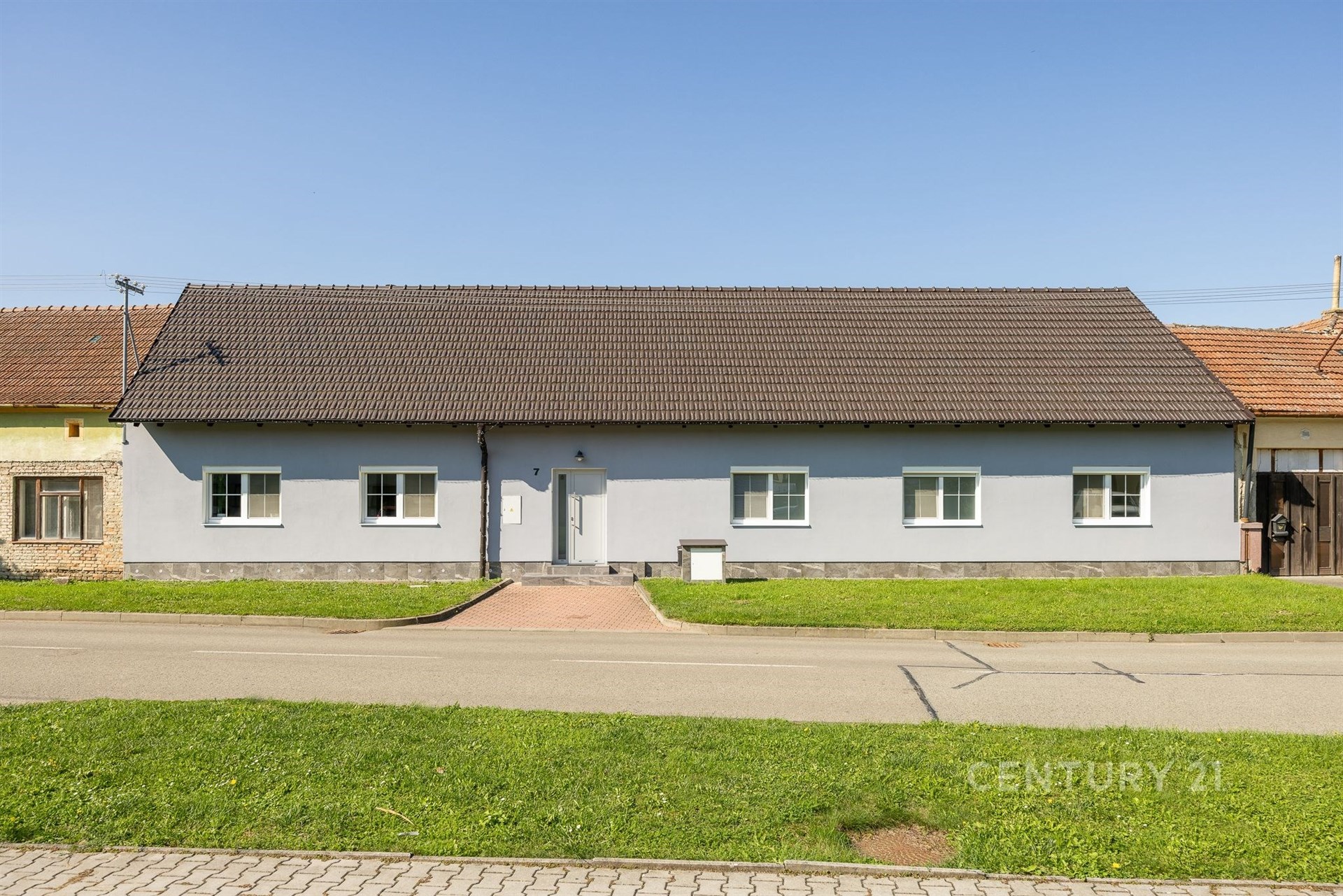 Prostorný řadový dům o dispozici 3+kk s podlahovou plochou 127,3 m² stojí na pozemku o velkorysé výměře 1 816 m².