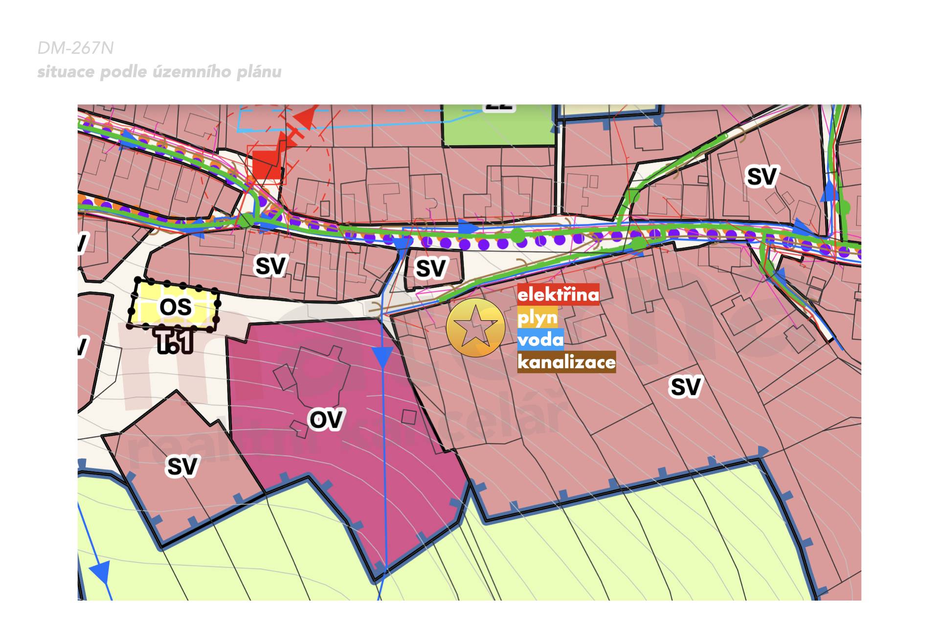 - Občanská vybavenost: Škola, Školka, Supermarket, Kompletní síť obchodů a služeb