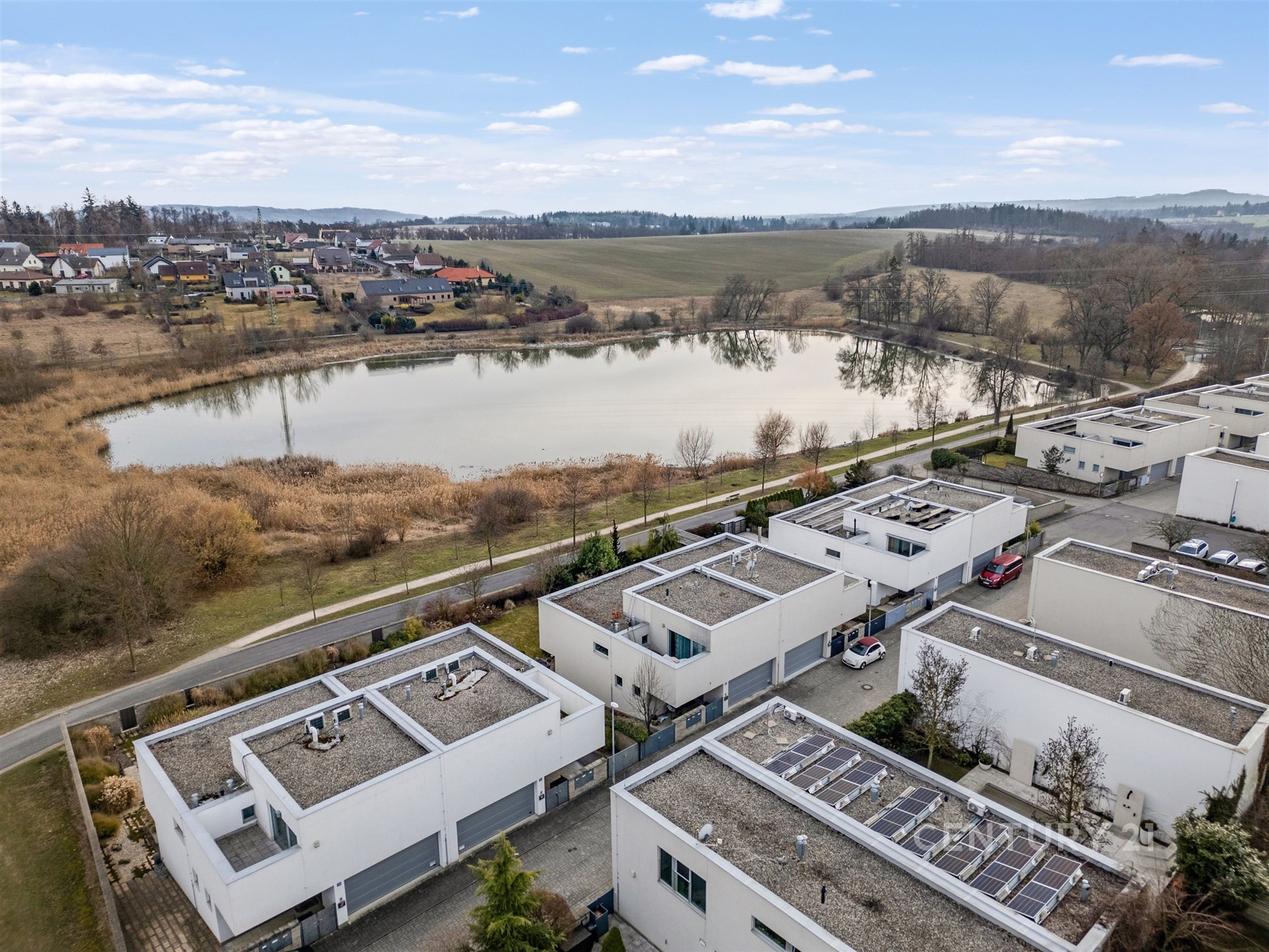 Moderní dům 5kk s dvougaráží v rodinném resortu Terasy Unhošť u rybníka, 30minut z centra Prahy