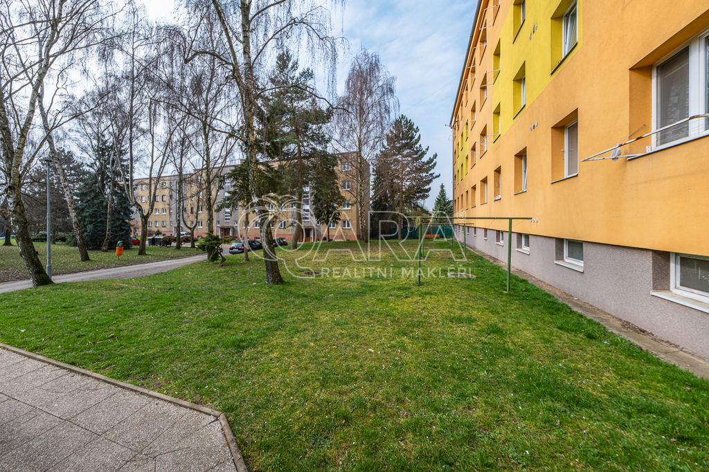 Dispozice zahrnuje prostorný obývací pokoj s výhledem do zeleně, samostatnou ložnici, samostatnou kuchyni s částečně rekonstruovanou kuchyňskou linkou, předsíň s velkými vestavěnými skříněmi, a koupelnu s vanou a umyvadlem, dále samostatnou toaletu. V bytě jsou vestavěné skříně, nové podlahy v obývacím pokoji a ložnici, vinylová podlaha v kuchyni a předsíni, protihluková stěna v obývacím pokoji a nové podhledy. Částečně jsou také nové rozvody elektřiny. Koupelna a toaleta jsou vybaveny dlažbou a obklady.
