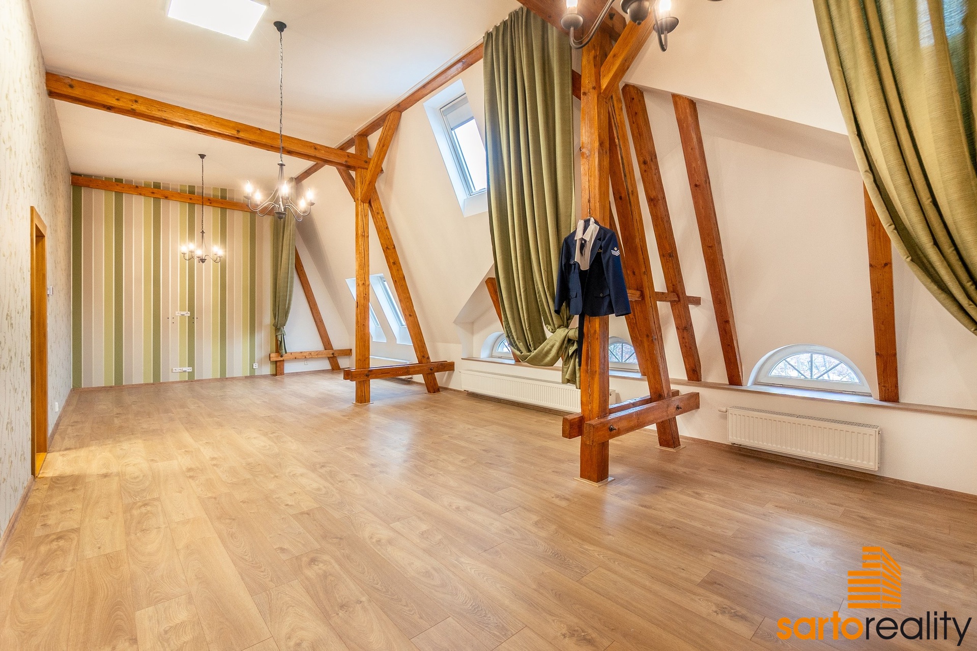 Vzhledem k tomu, že se jedná o poslední patro, je zde pěkný výhled a hlavně klid, přestože se nacházíme defacto v centru města.