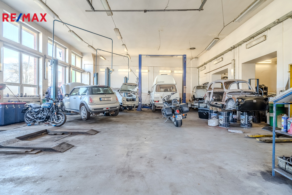 • Autoservis: Vybavený autoservis s kompletním vybavením pro opravy a údržbu vozidel včetně zvedacích plošin, klempířské dílny a profesionálního personálu.