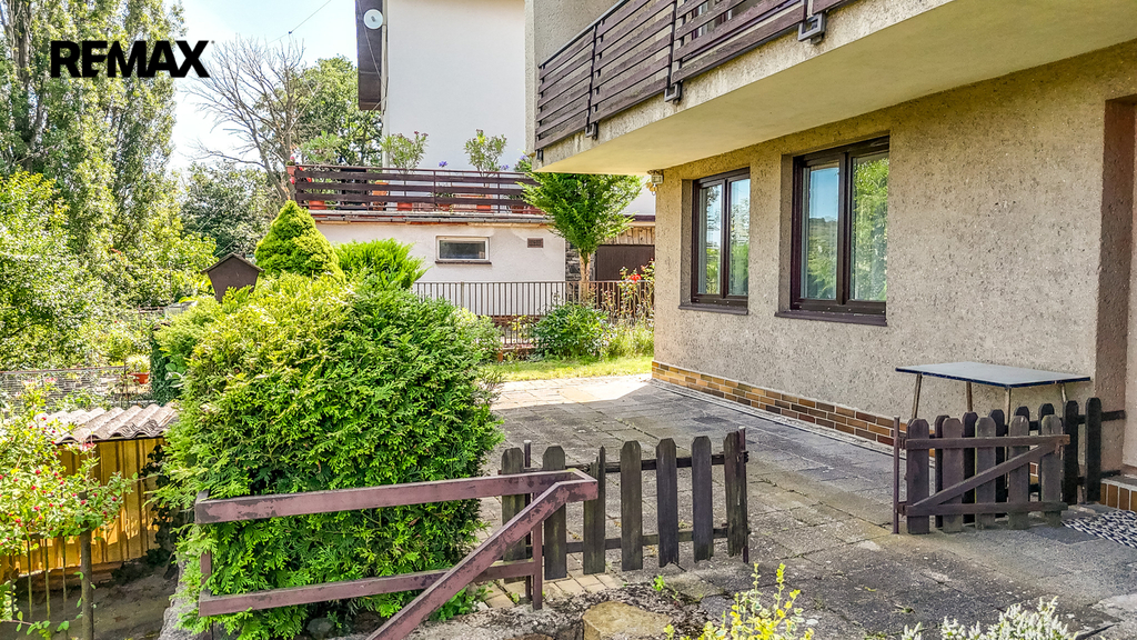 V přízemí domu se nachází další kuchyně, obývací pokoj, koupelna, toaleta, dvě obytné místnosti a technická místnost. Z tohoto patra se dostanete přímo na pečlivě udržovanou zahradu.
