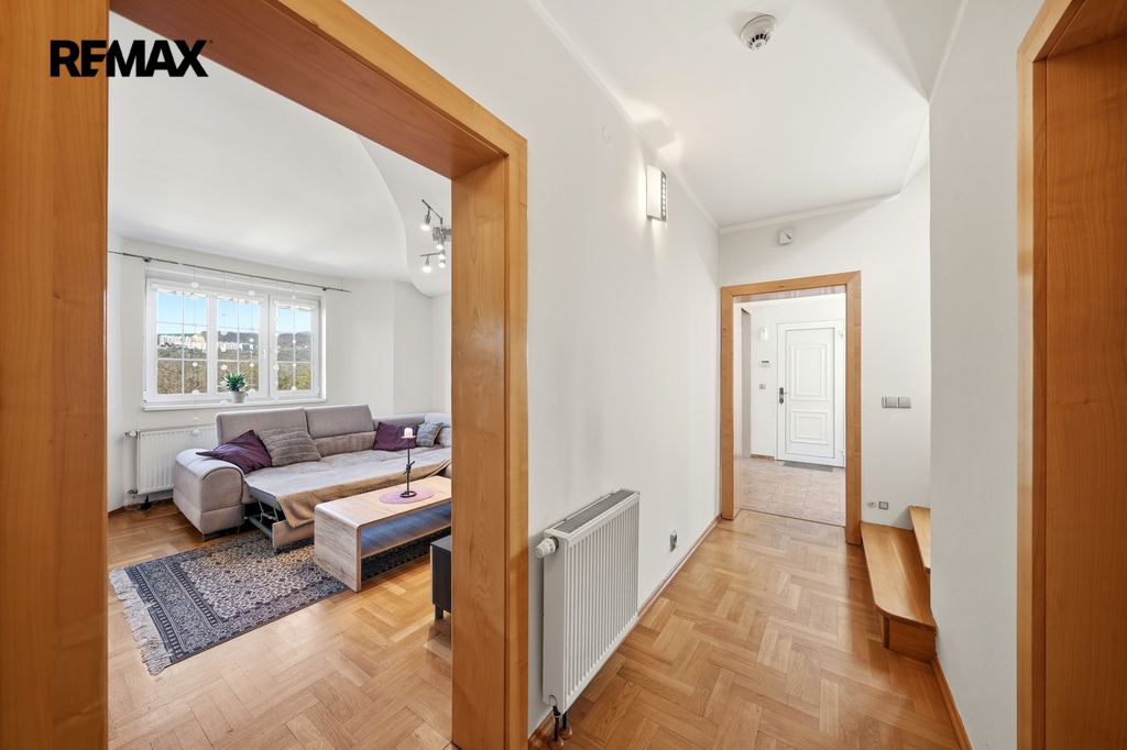 Vila z roku 1938 prošla řadou rekonstrukcí až do dnešního stavu, který reflektuje současné moderní požadavky na bydlení, tj. prostorná kuchyně spojená s jídelním koutem a obývacím pokojem, kde je velká komunikační zóna, tak i samostatné pokoje, kde si každý člen rodiny najde své soukromí.