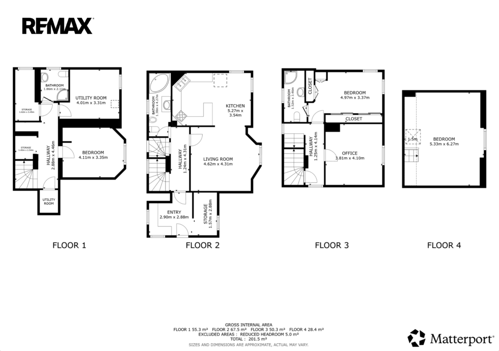 2.NP – ložnice, pracovna/pokoj, koupelna s WC, chodba (celkem 42,8 m2)