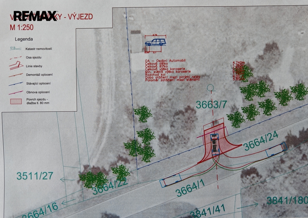 K pozemkům je vyhotoven projekt na stavbu sjezdu, do kterého je možné nahlédnout. Navržený sjezd představuje zpevněnou dopravní plochu sloužící k vjezdu a výjezdu vozidel za účelem dopravní obsluhy připojovaného pozemku. Jedná se o stavbu jednoduchého technického charakteru, bez architektonických nároků.