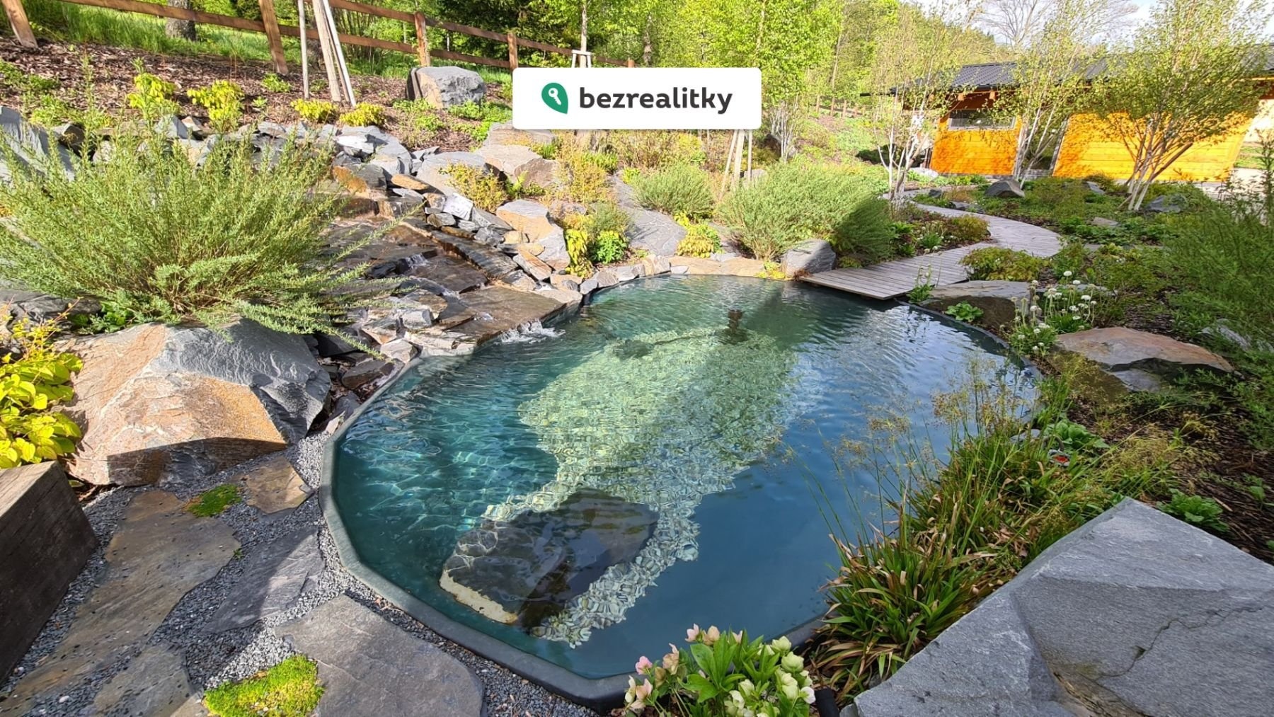 Prostorný pozemek o výměře 4500 m² je osazen ovocnými stromy a rozmanitými druhy dřevin a keřů aby nenarušoval ráz okolní krajiny.