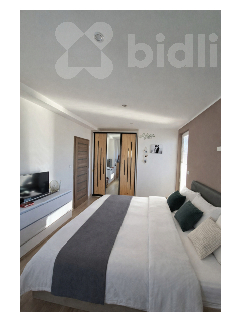 - Popis vybavení: Kuchyně, TV zavěsny stůl, vestavěné skříně a botník v chodbě. Koupelnový nábytek, nové designové topné tělesa k instalaci, zabudované rolety. Nové bezpečnostní vstupní dveře