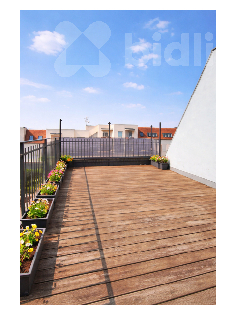 Velkým benefitem této nemovitosti je prostorná střešní terasa o velikosti 21 m², která patří mezi ojedinělé prvky v této lokalitě i městě. Nabízí dostatek soukromí, krásné výhledy a možnost vytvořit si vlastní oázu klidu - ať už pro relaxaci, grilování nebo pěstování vlastní zeleniny. Terasa má dřevěnou podlahu, bezpečně ohraničená zábradlím s uměleckým kováním na zakázku.