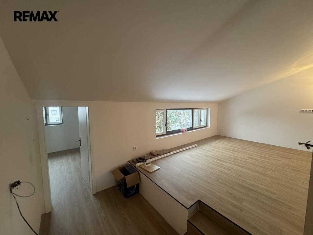 Byt je zcela nově vybudovaný v podkrovních prostorách domu a dosud nebyl obýván – budoucí nájemce bude prvním uživatelem. Interiér nabízí velkorysý, otevřený a členitý prostor, který působí vzdušně a zároveň útulně.