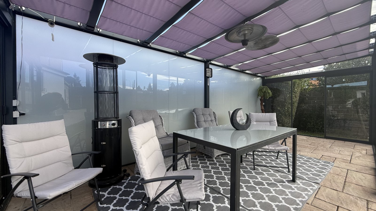 Na udržované zahradě se nachází krytý bazén a bioklimatická pergola s posezením. Součástí pozemku je také samostatná vedlejší stavba s kuchyňskou linkou a sprchovým koutem, kterou lze využít jako samostatnou bytovou jednotku, zázemí pro hosty nebo jako plnohodnotné zázemí k bazénu a venkovnímu posezení.