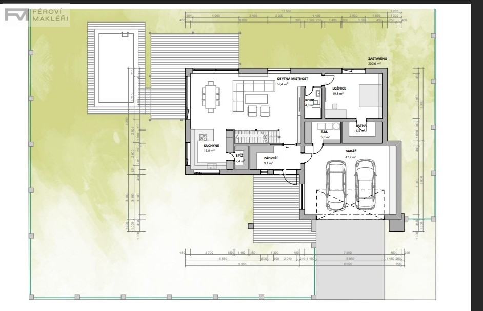 Součástí pozemku je vypracovaný projekt od renomovaných architektů z Ateliéru Pod věží - dům 5kk s dvojgaráží. Projekt má schválené stavební povolení, lze ihned stavět.