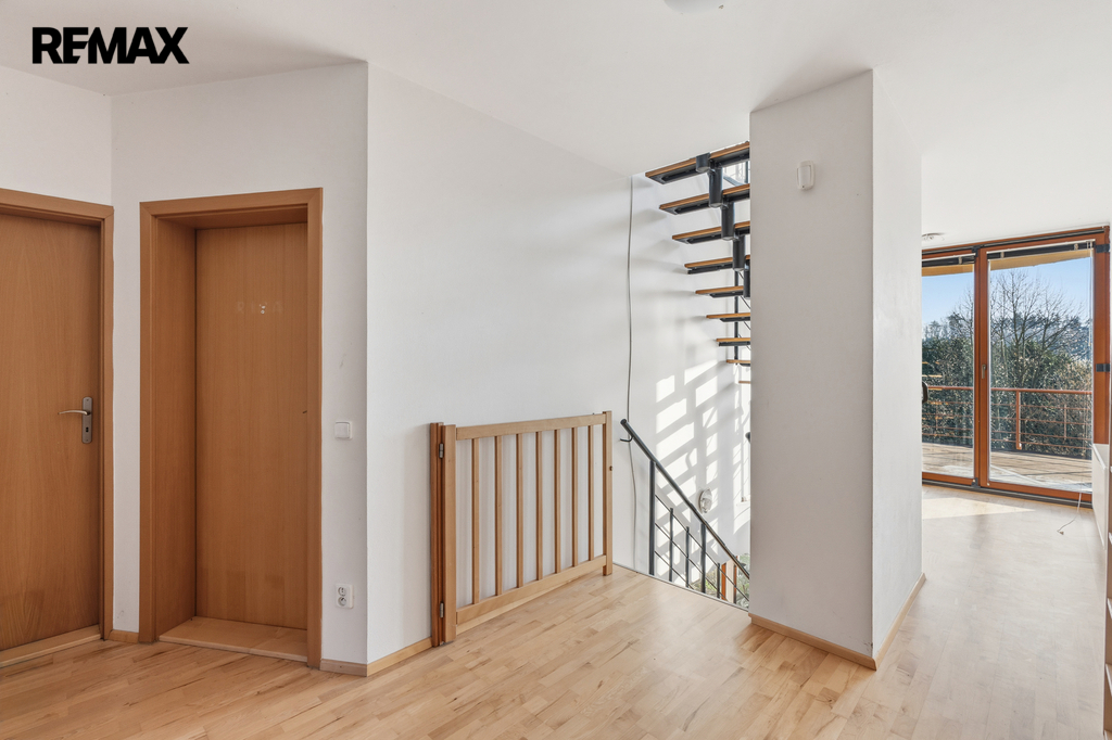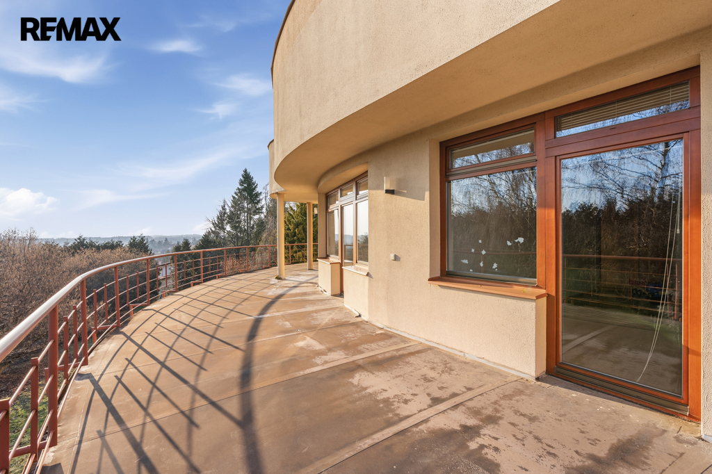 Z terasy je nádherný výhled do zeleně a do okolní krajiny. To, co tuto nemovitost skutečně odlišuje od ostatních, je kombinace naprostého soukromí a velkorysé výměry domu i pozemku.