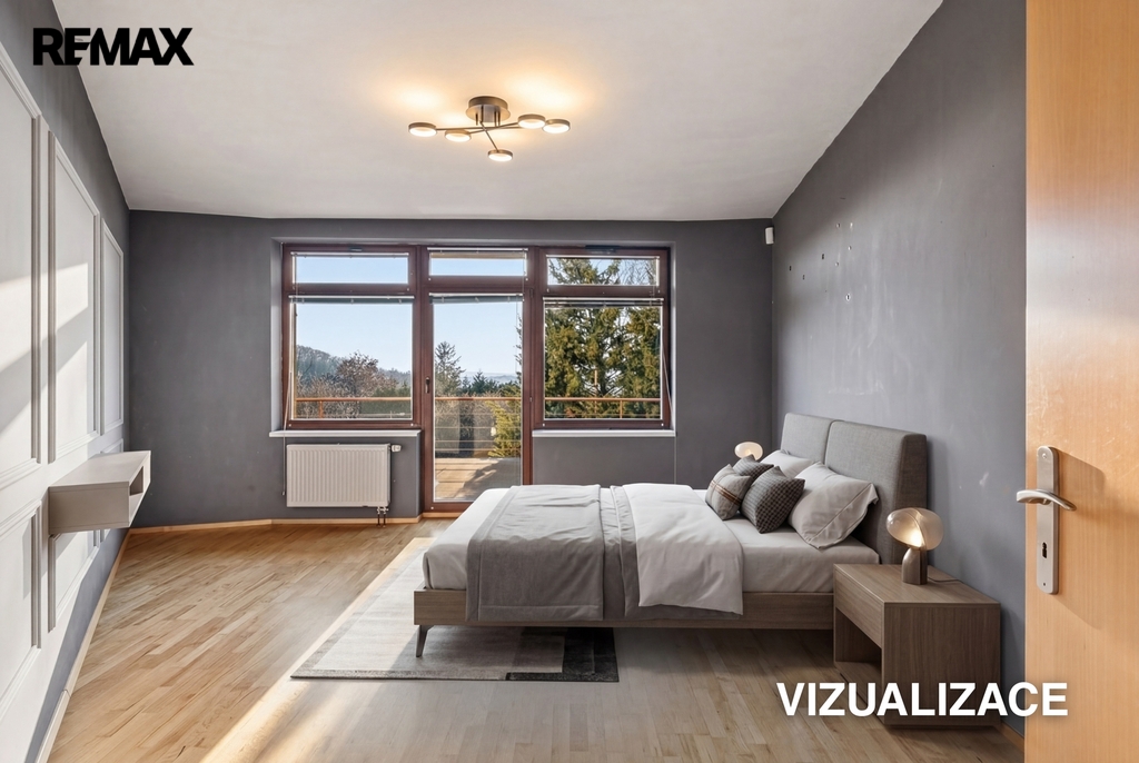 • vstup na prostornou terasu (cca 80 m²) z každé ložnice