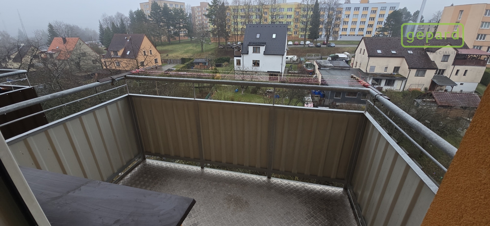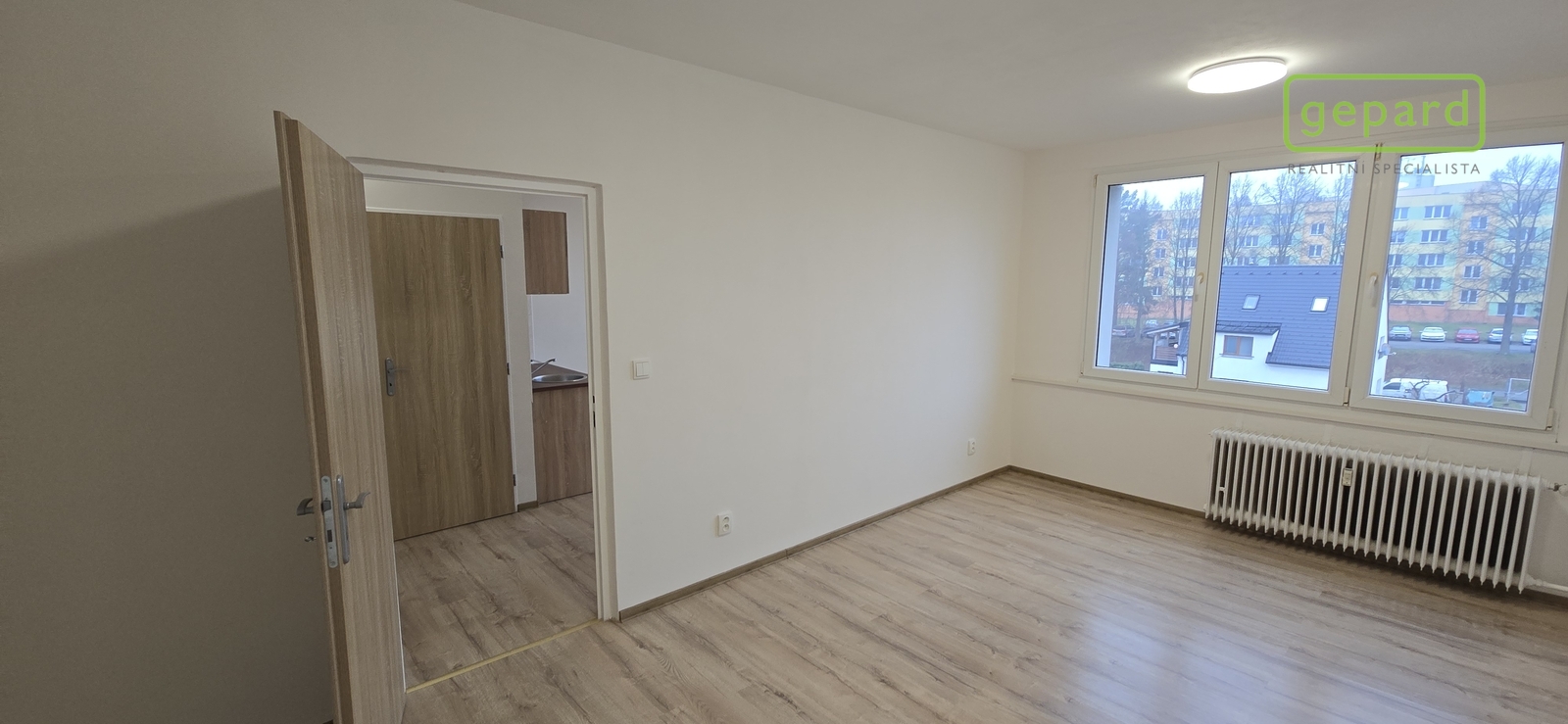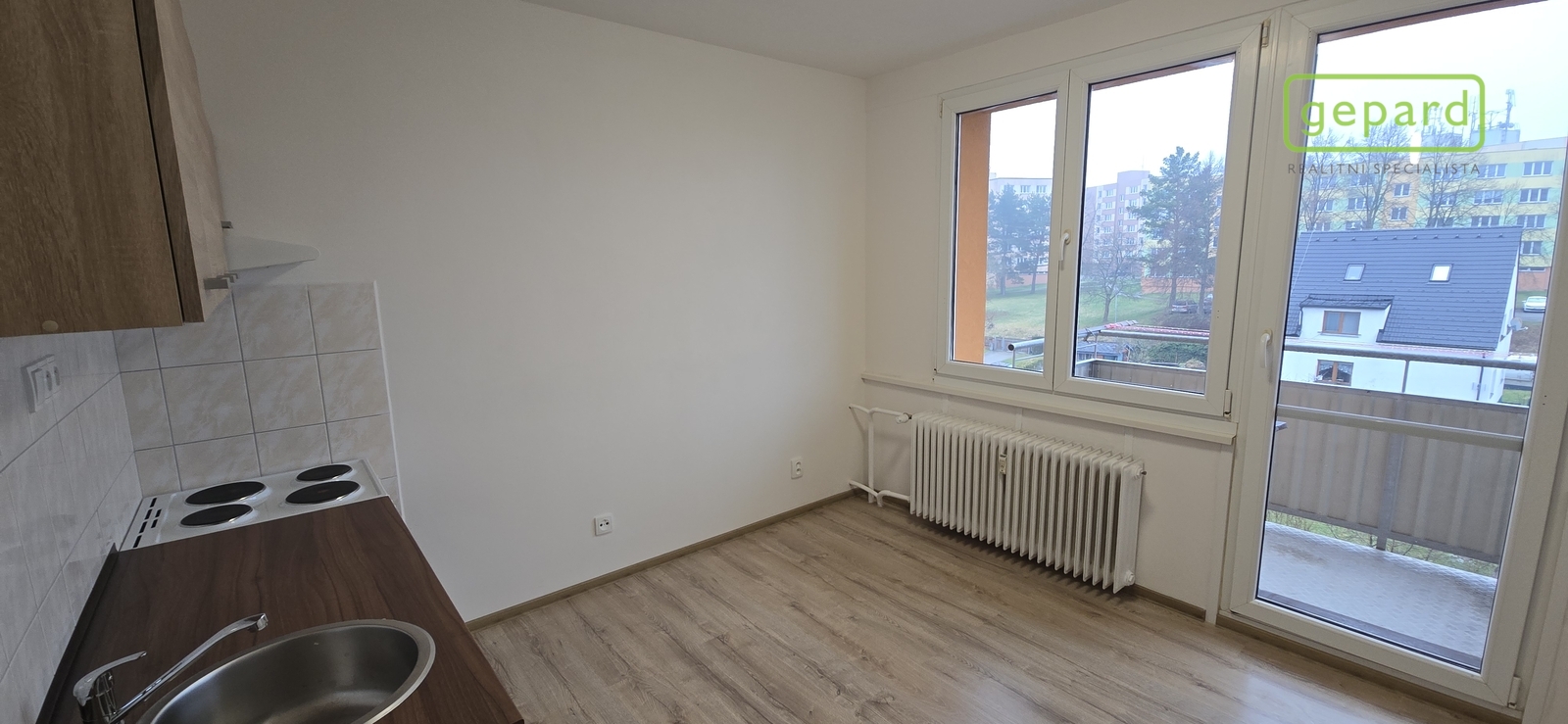 Dispozice: Vstup, chodba, zděné jádro, koupelna se sprchovacím koutem a umyvadlem a přípojkou na pračku, samostatná toaleta, kuchyně s výstupem na balkon, nová kuchyňská linka s elektrickým sporákem a digestoří, dále druhý samostatný pokoj.