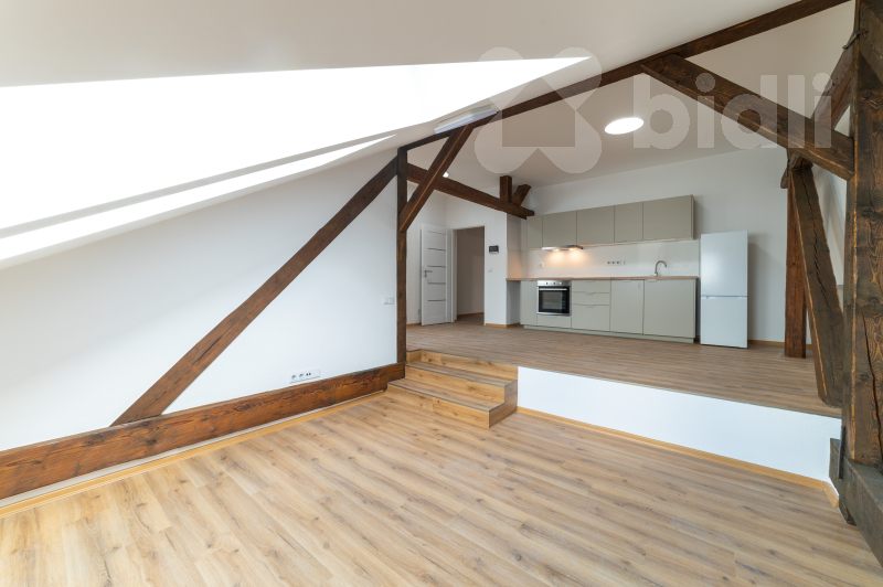 Nabízím k pronájmu krásný atypický byt 2+1 v centru Vizovic, který je řešen jako otevřený podkrovní prostor.