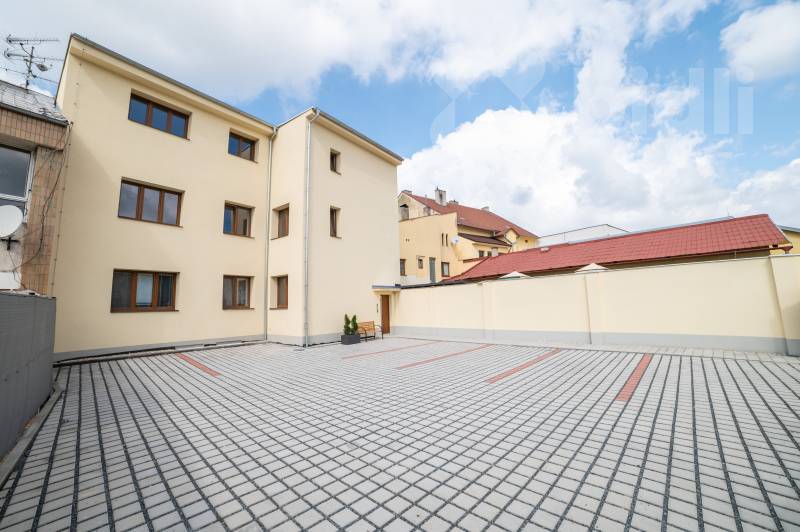 K bytu je možno pronajmout parkovací stání na uzavřeném dvoře za 1.000 Kč/měsíc.